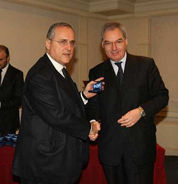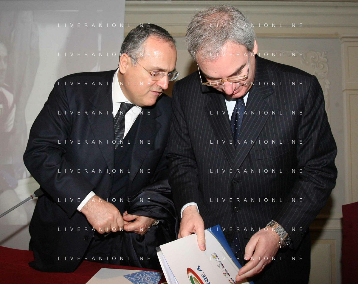 MILANO 13-12-2010 HOTEL PRINCIPE DI SAVOIA CALCIO LEGA CALCIO PREMIAZIONI ANNO CALCISTICO SERIE A TIM 2009-2010 NELLA FOTO CLAUDIO LOTITO MAURIZIO BERETTA PH.FIOCHI/AG ALDO LIVERANI SAS