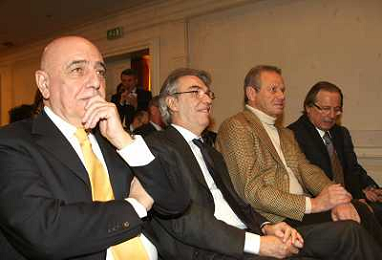 MILANO 13-12-2010 HOTEL PRINCIPE DI SAVOIA CALCIO LEGA CALCIO PREMIAZIONI ANNO CALCISTICO SERIE A TIM 2009-2010 NELLA FOTO MASSIMO MORATTI ADRIANO GALLIANI MAURIZIO ZAMPARINI GINO CORIONI PH.FIOCHI/AG ALDO LIVERANI SAS