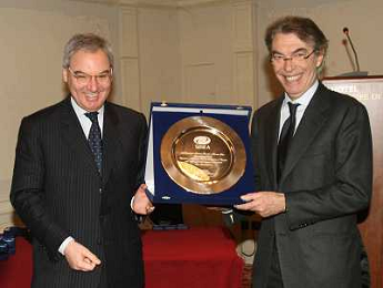 MILANO 13-12-2010 HOTEL PRINCIPE DI SAVOIA CALCIO LEGA CALCIO PREMIAZIONI ANNO CALCISTICO SERIE A TIM 2009-2010 NELLA FOTO ADRIANO GALLIANI MASSIMO MORATTI PH.FIOCHI/AG ALDO LIVERANI SAS