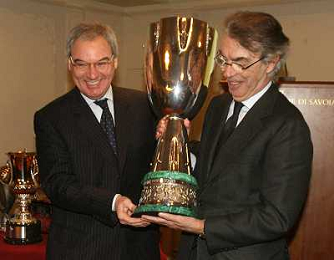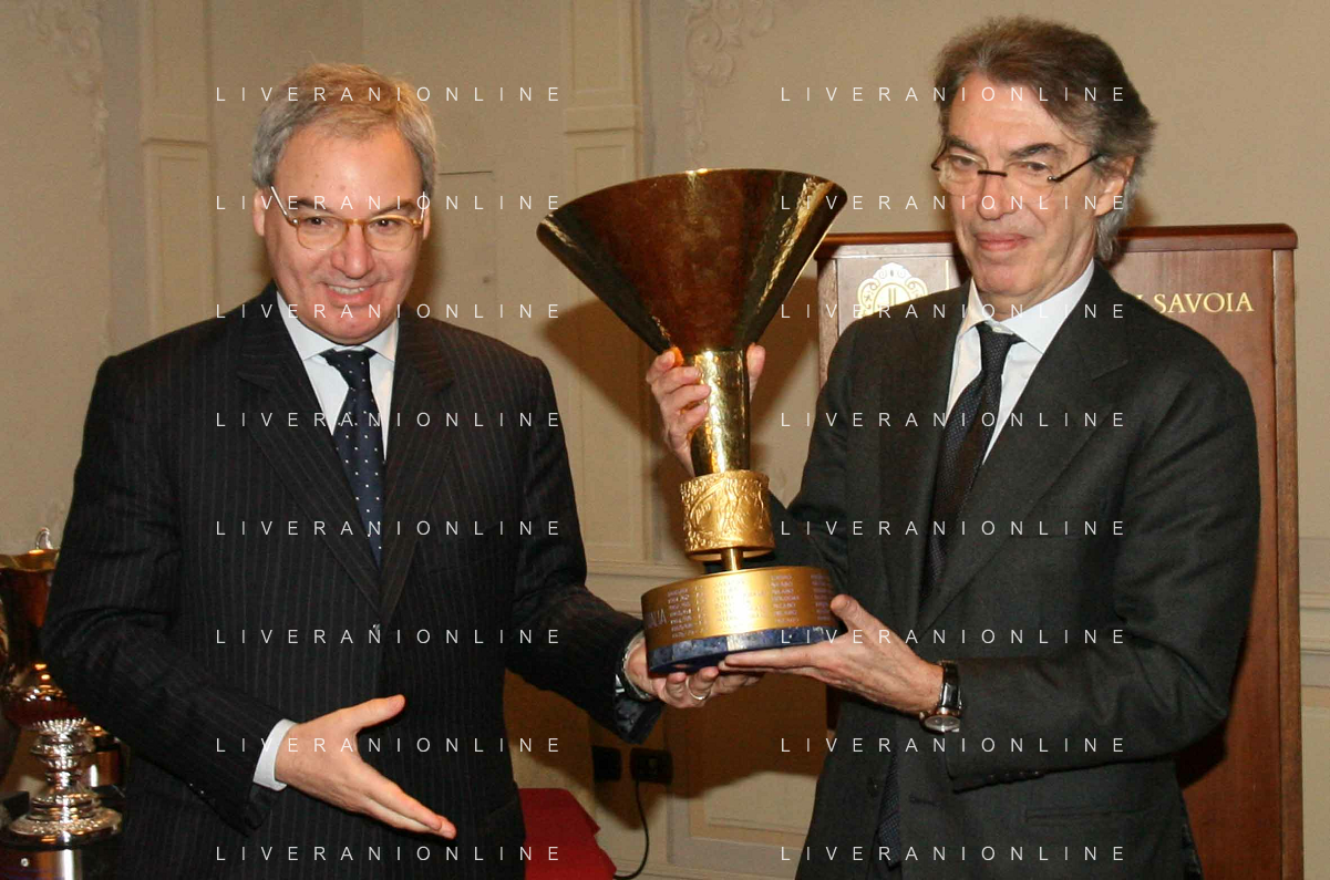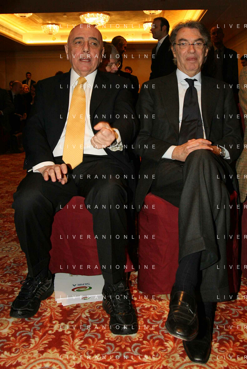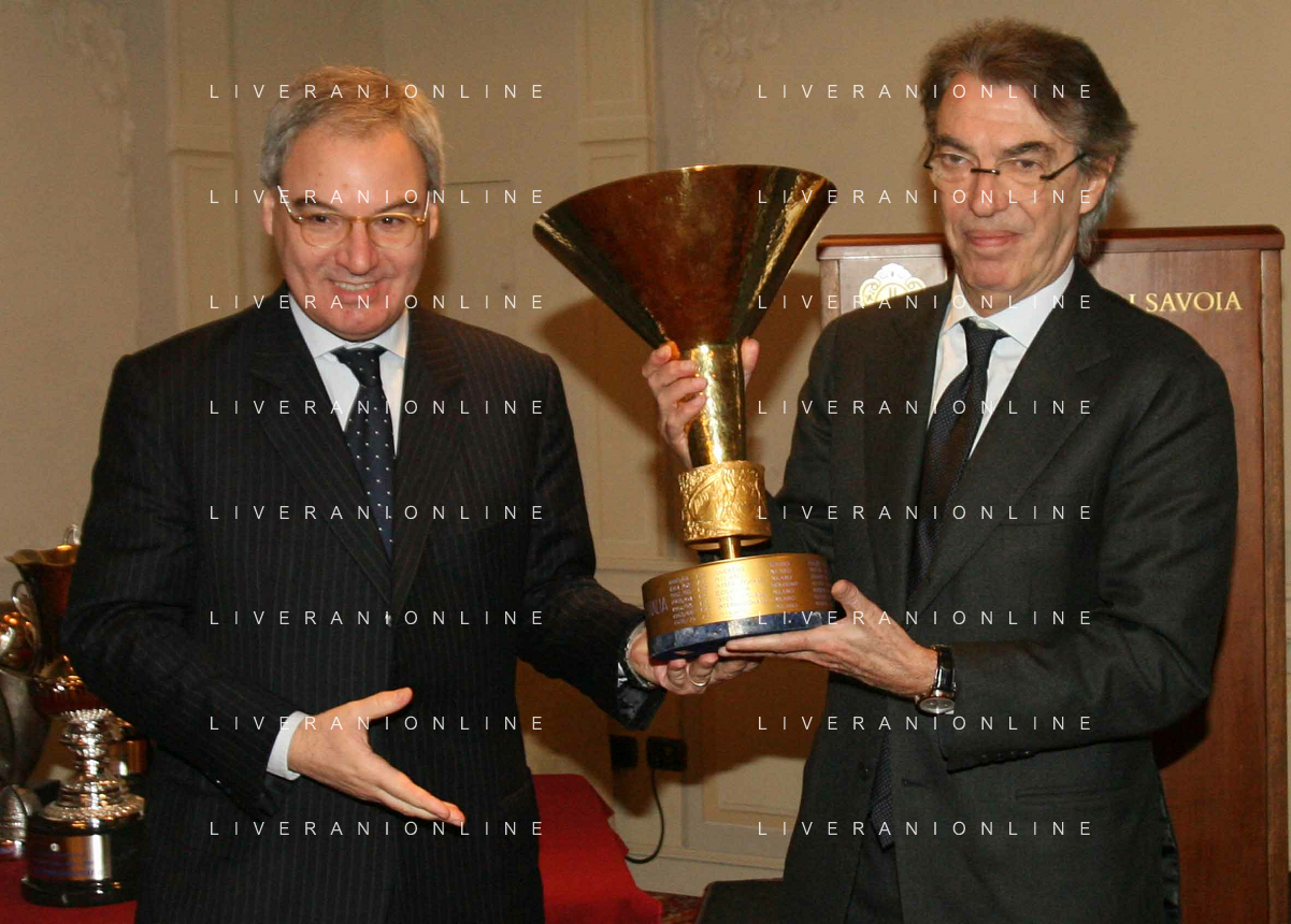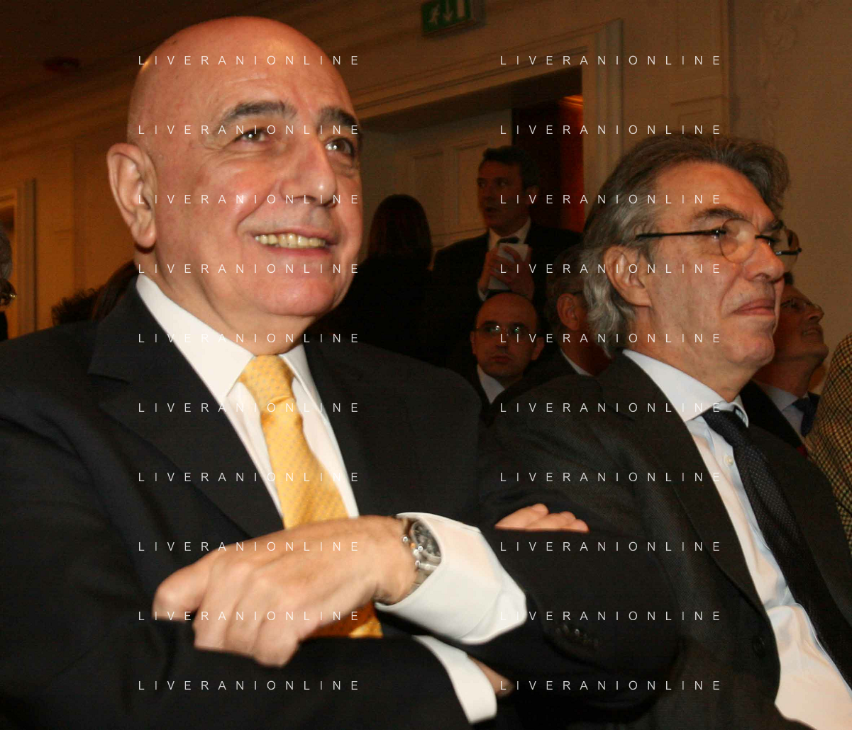 MILANO 13-12-2010 HOTEL PRINCIPE DI SAVOIA CALCIO LEGA CALCIO PREMIAZIONI ANNO CALCISTICO SERIE A TIM 2009-2010 NELLA FOTO MORATTI MASSIMO ADRIANO GALLIANI PH.FIOCHI/AG ALDO LIVERANI SAS *** Local Caption ***