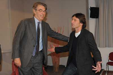 MILANO 11/11/2009 MONDADORI MULTICENTER VIA MARGHERA, 28 PRESENTAZIONE DEL LIBRO DI MARIO SCONCERTI: 'STORIA DELLE IDEE DEL CALCIO' NELLA FOTO MASSIMO MORATTI E LEONARDO FOTO ROMANO/AG ALDO LIVERANI