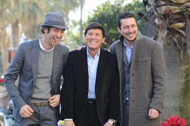 SANREMO 26-1-2011 SPETTACOLO PRESENTAZIONE DEL FESTIVAL DELLA MUSICA ITALIANA NELLA FOTO GIANNI MORANDI , LUCA BIZZARRI E PAOLO KESSISOGLU PH.gazzaniga/AG.ALDO LIVERANI SAS
