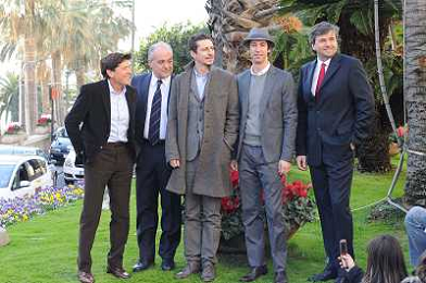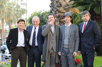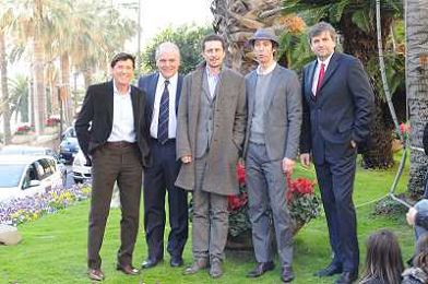 SANREMO 26-1-2011 SPETTACOLO PRESENTAZIONE DEL FESTIVAL DELLA MUSICA ITALIANA NELLA FOTO GIANNI MORANDI , MAURO MASI , LUCA BIZZARRI , PAOLO KESSISOGLU E GIANMARCO MAZZA PH.gazzaniga/AG.ALDO LIVERANI SAS