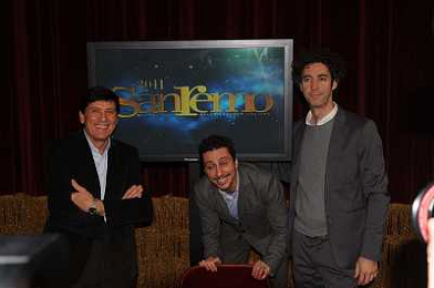 SANREMO 26-1-2011 SPETTACOLO PRESENTAZIONE DEL FESTIVAL DELLA MUSICA ITALIANA NELLA FOTO PAOLO KESSISOGLU , GIANNI MORANDI E LUCA BIZZARRI PH.gazzaniga/AG.ALDO LIVERANI SAS