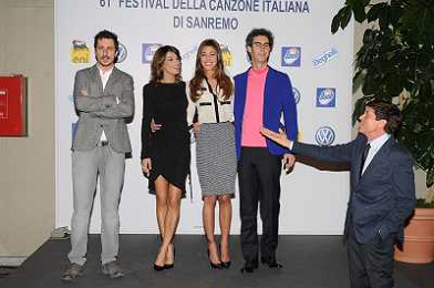 SANREMO 14 FEBBRAIO 2011 61mo FESTIVAL DELLA CANZONE ITALIANA CONFERENZA STAMPA DI PRESENTAZIONE UFFICIALE NELLLA FOTO LUCA BIZZARRI , ELISABETTA CANALIS , GIANNI MORANDI , BELEN RODRIGUEZ , PAOLO KESSISOGLU FOTO GAZZANICA/AG. ALDO LIVERANI SAS