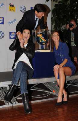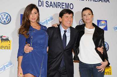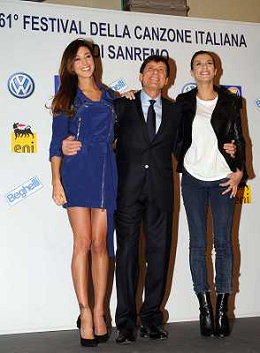 SANREMO 17-2-2011 SPETTACOLO CONFERENZA STAMPA FESTIVAL DELLA CANZONE ITALIANA SANREMO 61ma EDIZIONE NELLA FOTO GIANNI MORANDI BELEN RODRIGUEZ ELISABETTA CANALIS PH.GAZZANIGA/AG ALDO LIVERANI SAS
