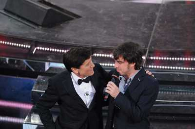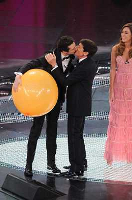 61mo FESTIVAL DELLA CANZONE ITALIANA DI SANREMO 19/02/2011 - QUINTA ED ULTIMA SERATA NELLA FOTO BACIO TRA LUCA BIZZARRI E GIANNI MORANDI ©GAZZANIGA/AGENZIA ALDO LIVERANI SAS