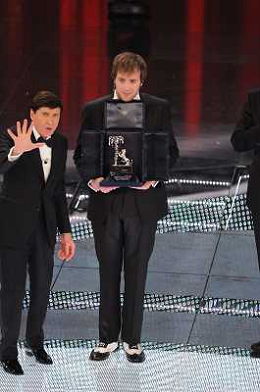 61mo FESTIVAL DELLA CANZONE ITALIANA DI SANREMO 19/02/2011 - QUINTA ED ULTIMA SERATA NELLA FOTO GIANNI MORANDI CON ROBERTO VECCHIONI VINCITORE ©GAZZANIGA/AGENZIA ALDO LIVERANI SAS