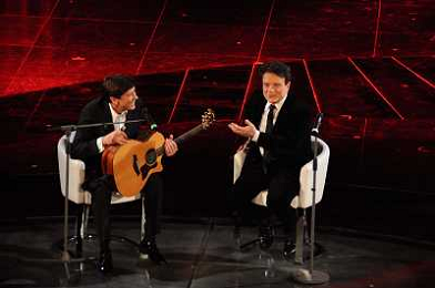 61mo FESTIVAL DELLA CANZONE ITALIANA DI SANREMO 19/02/2011 - QUINTA ED ULTIMA SERATA NELLA FOTO GIANNI MORANDI CON RAPHAEL GUALAZZI ©GAZZANIGA/AGENZIA ALDO LIVERANI SAS