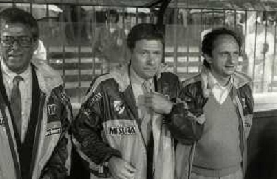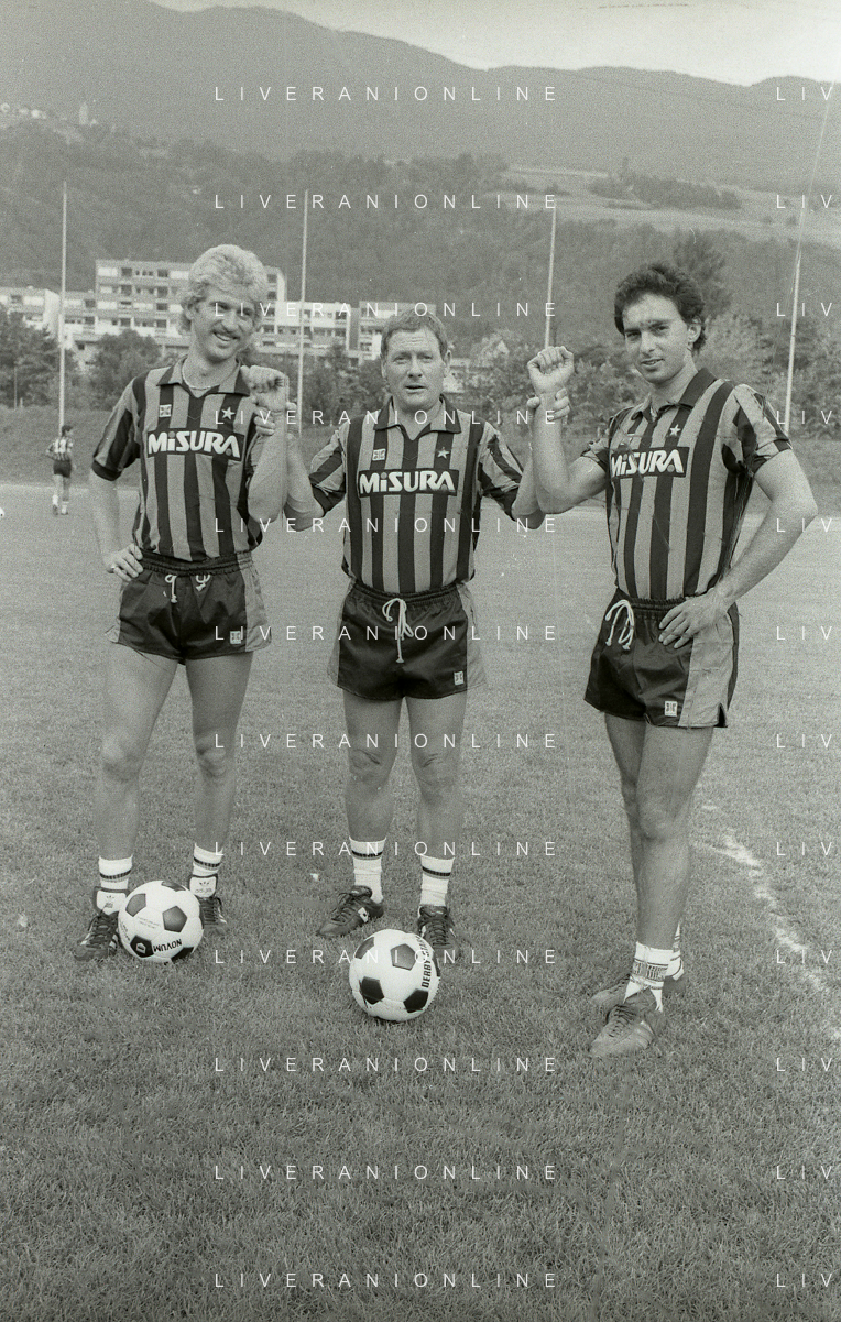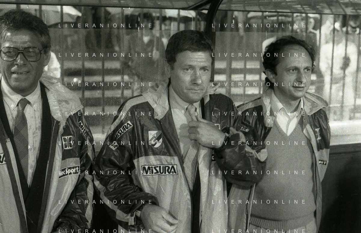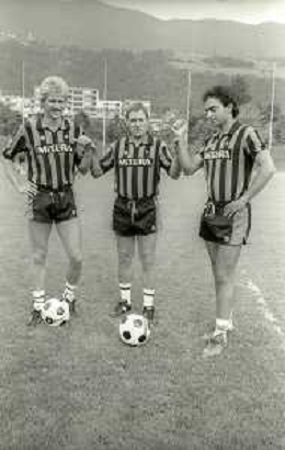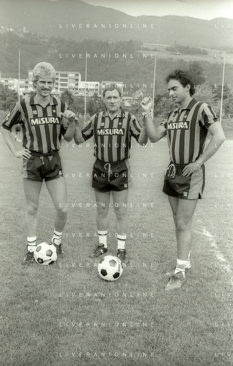 NEG-RETROSPETTIVA LUIGI RADICE ALLENATORE CALCIO NELLA FOTO LUIGI RADICE ALLENATORE INTER CALCIO NELL'ANNO 1983-1984 CON HANSI MULLER E ANTONIO SABATO AG ALDO LIVERANI SAS