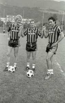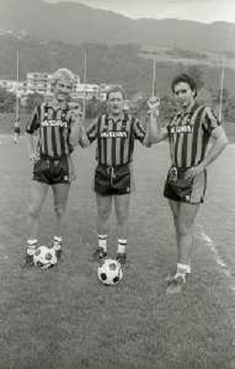 NEG-RETROSPETTIVA LUIGI RADICE ALLENATORE CALCIO NELLA FOTO LUIGI RADICE ALLENATORE INTER CALCIO NELL'ANNO 1983-1984 CON HANSI MULLER E LUDO COECK AG ALDO LIVERANI SAS