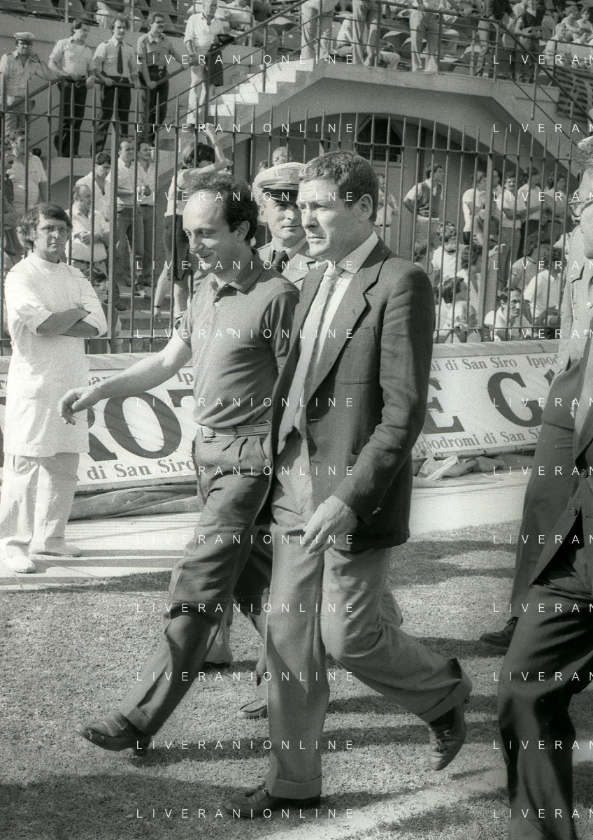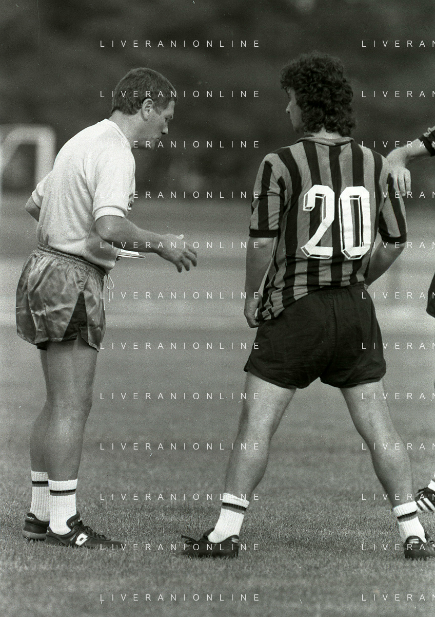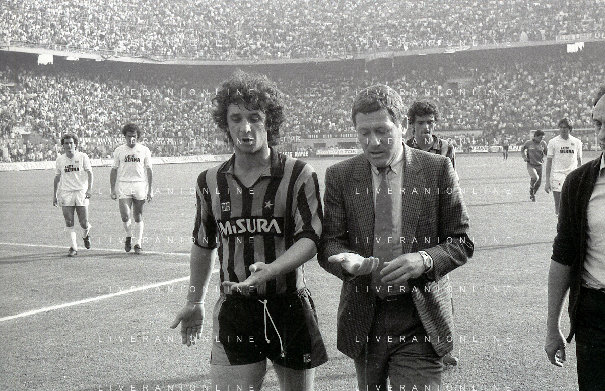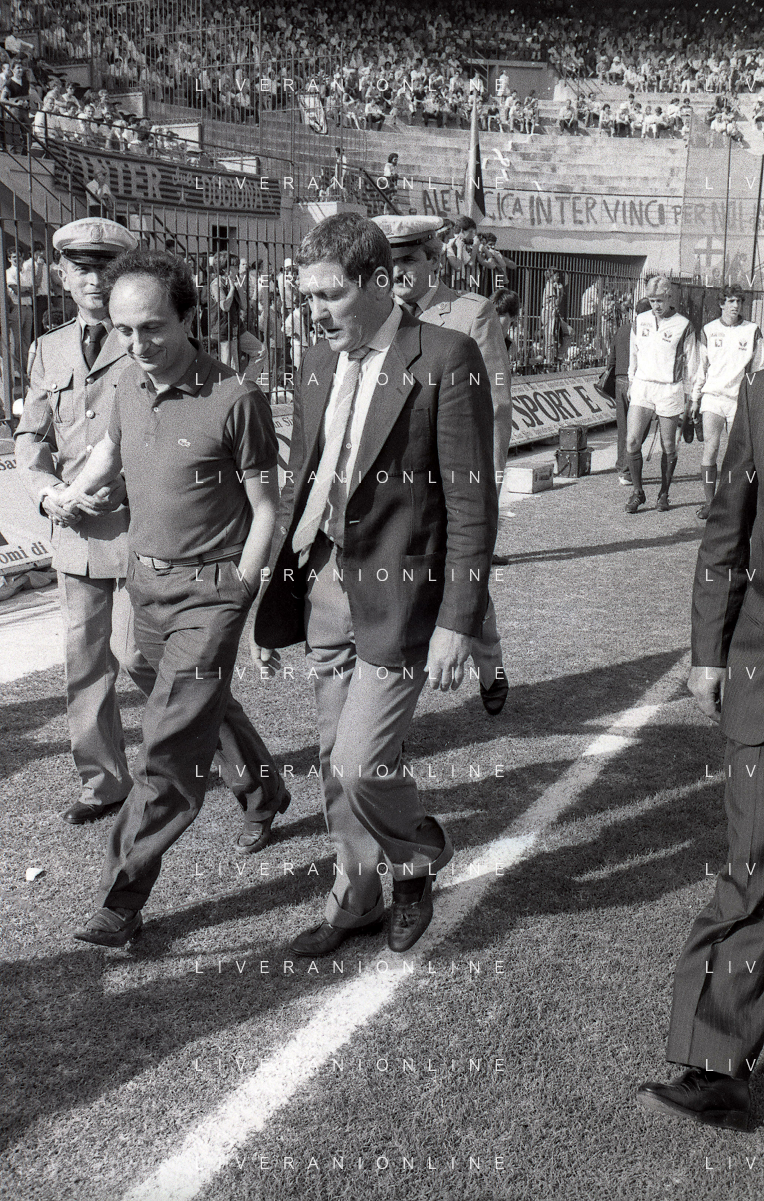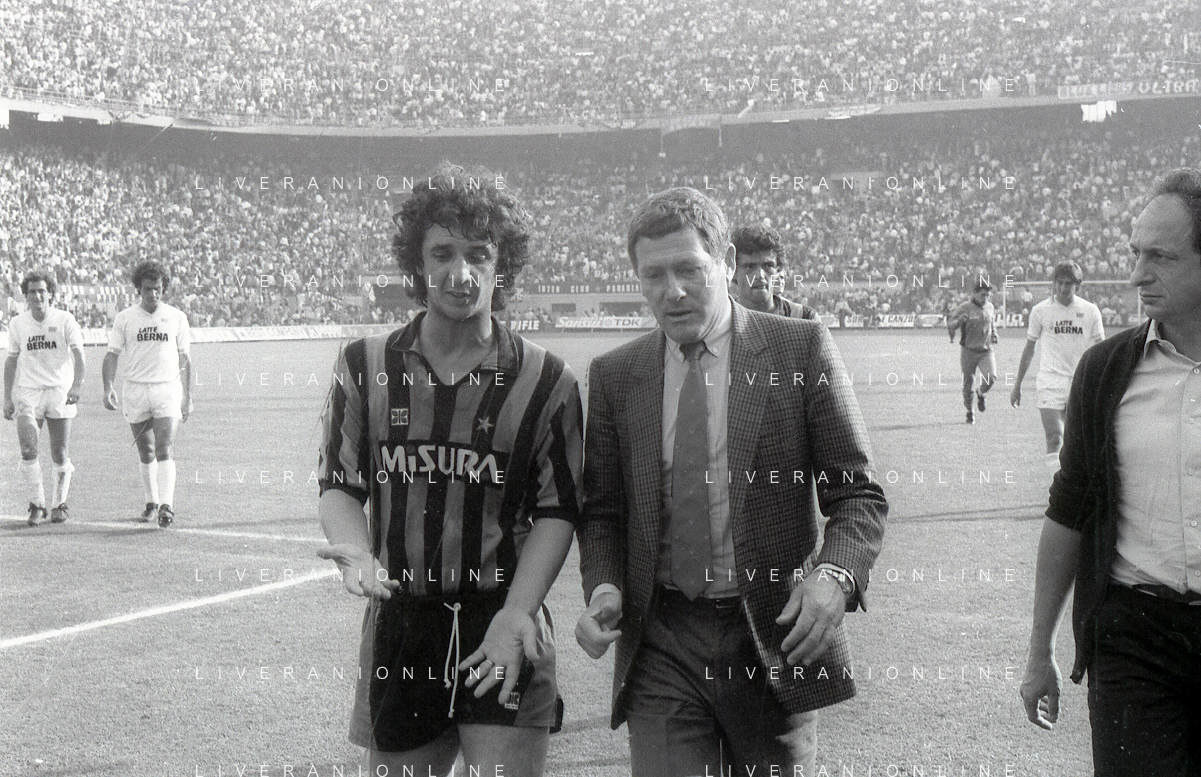 NEG-RETROSPETTIVA LUIGI RADICE ALLENATORE CALCIO NELLA FOTO LUIGI RADICE ALLENATORE INTER CALCIO NELL'ANNO 1983-1984 CON EVARISTO BECCALOSSI AG ALDO LIVERANI SAS