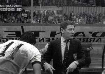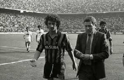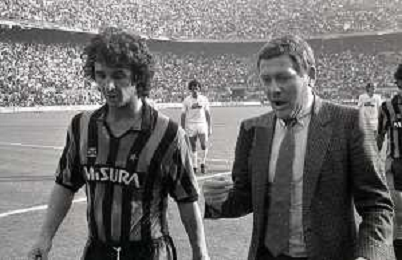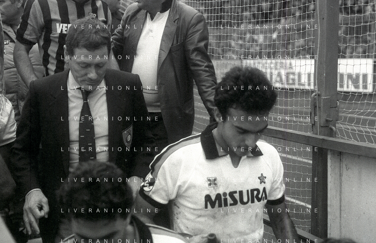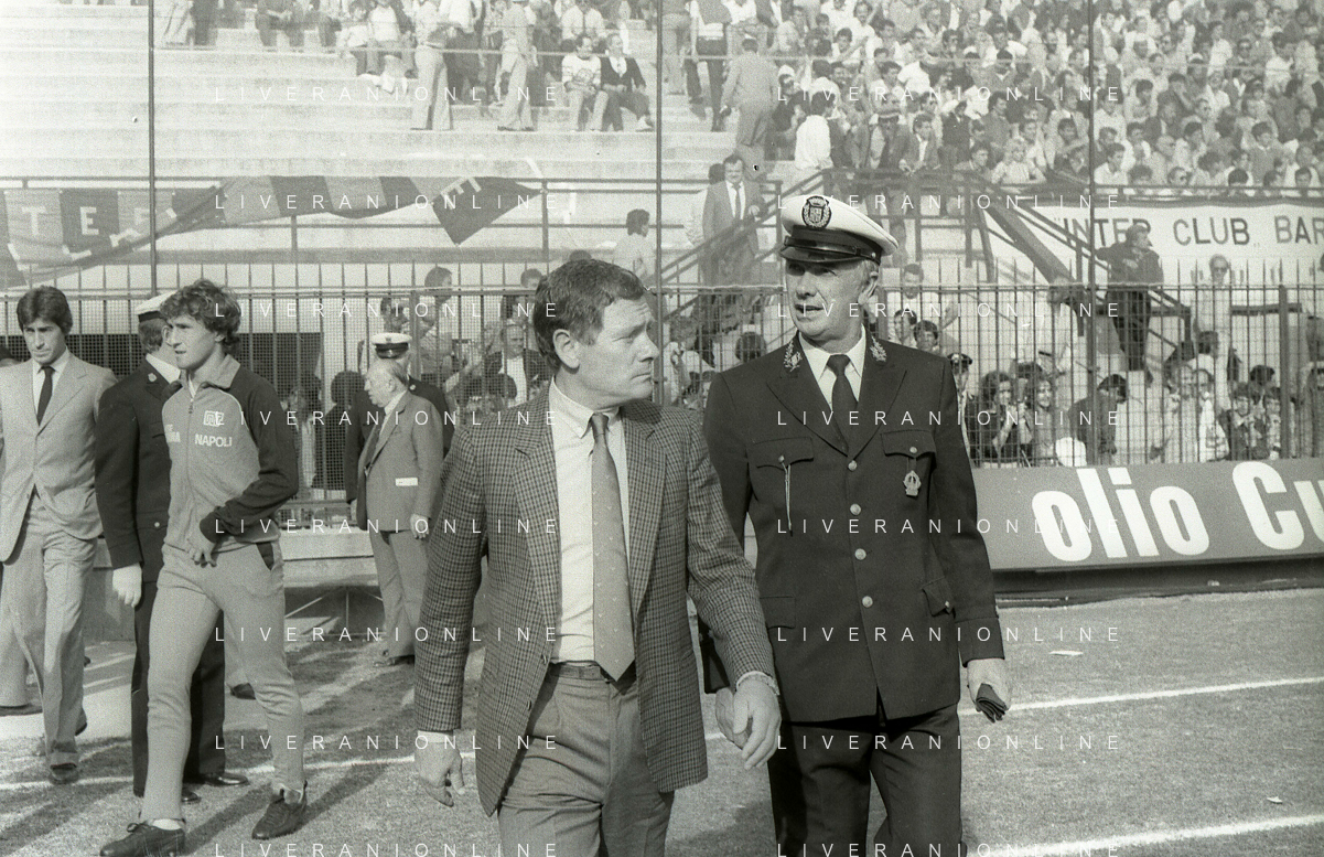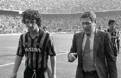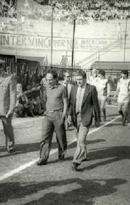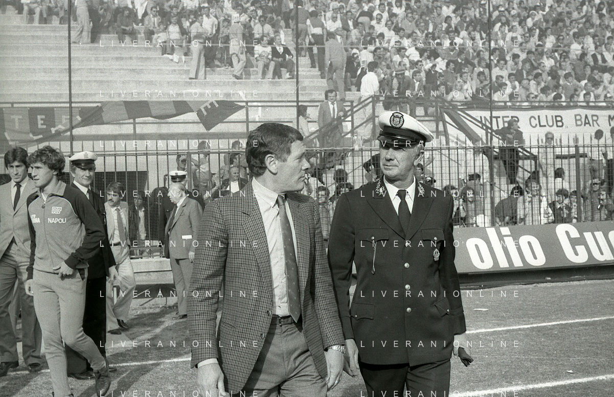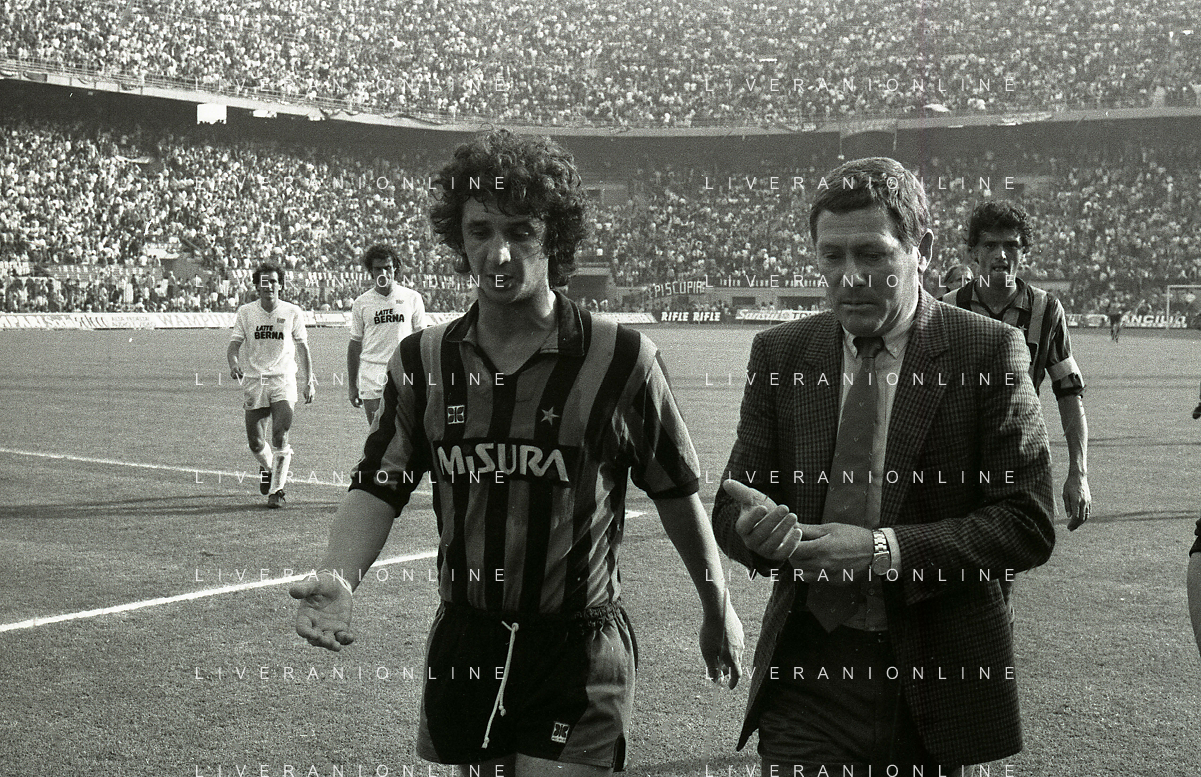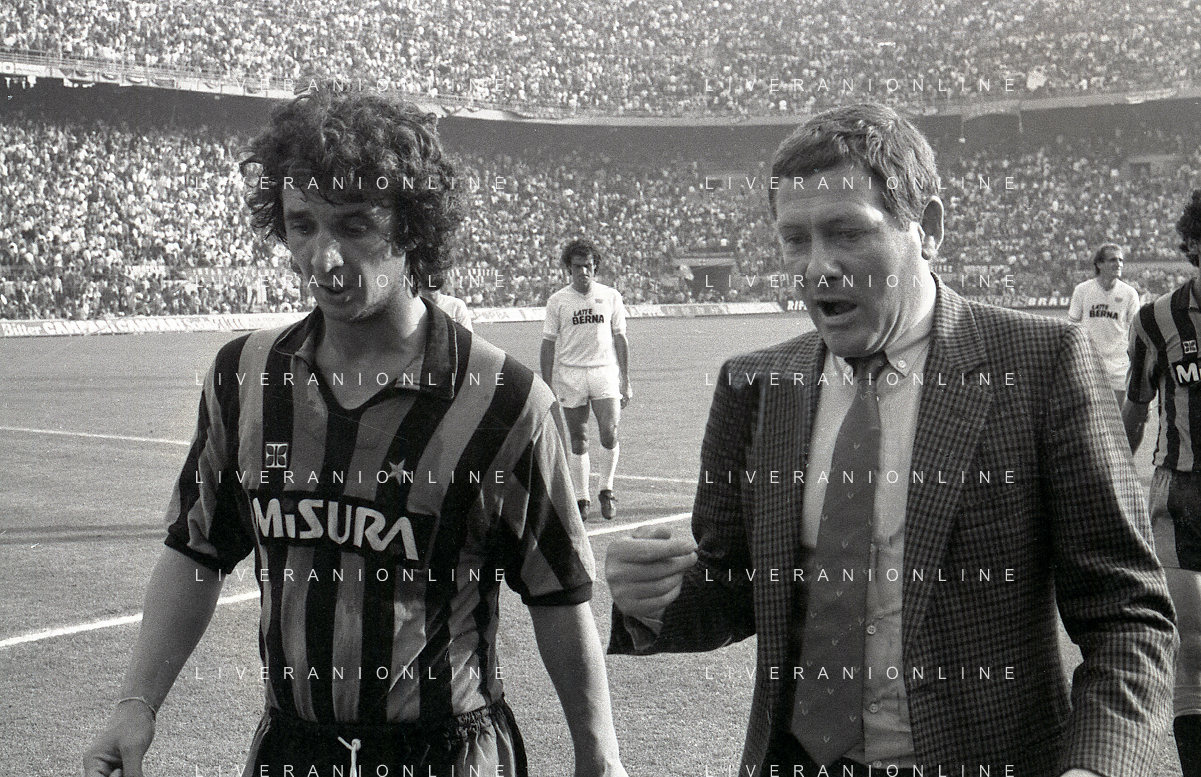NEG-RETROSPETTIVA LUIGI RADICE ALLENATORE CALCIO NELLA FOTO LUIGI RADICE ALLENATORE INTER CALCIO NELL'ANNO 1983-1984 CON EVARISTO BECCALOSSI AG ALDO LIVERANI SAS