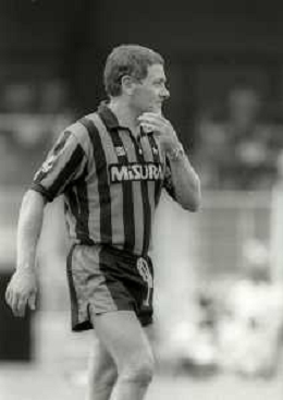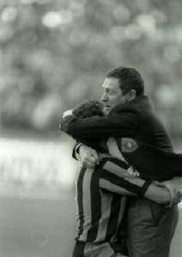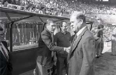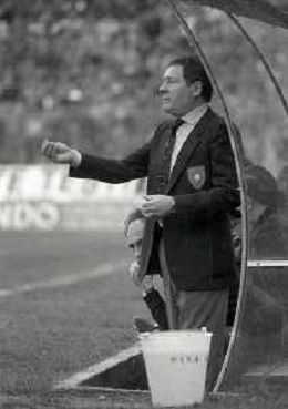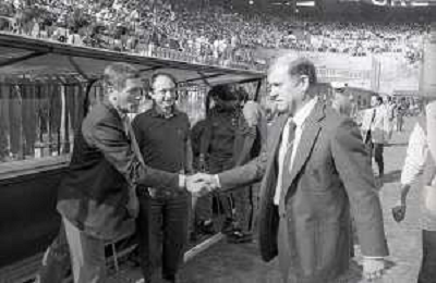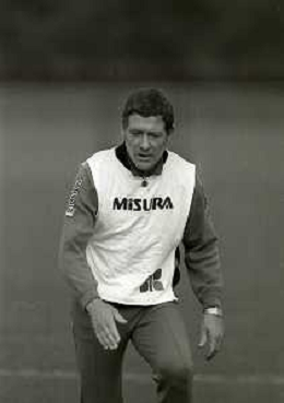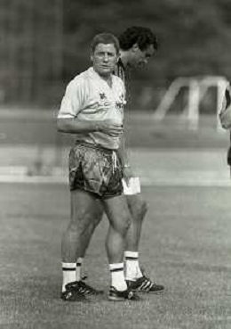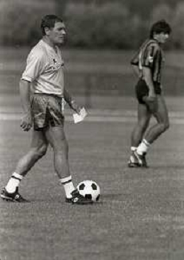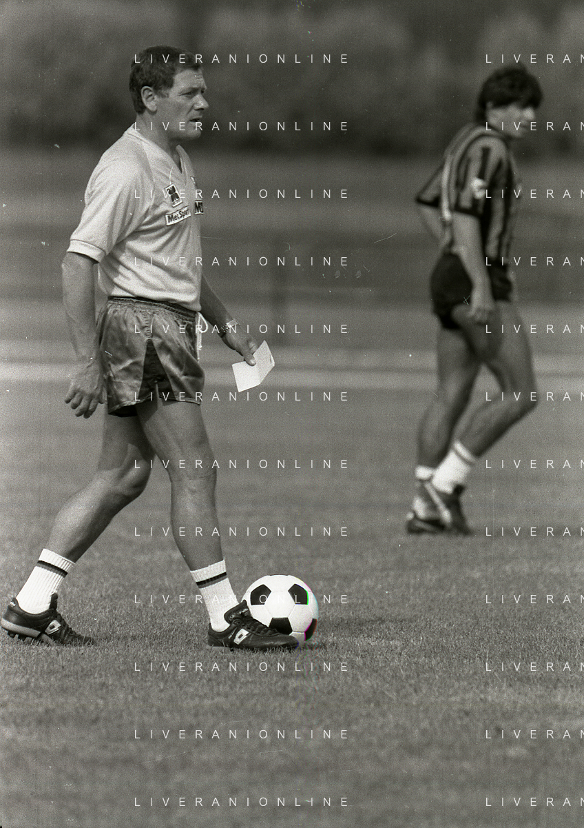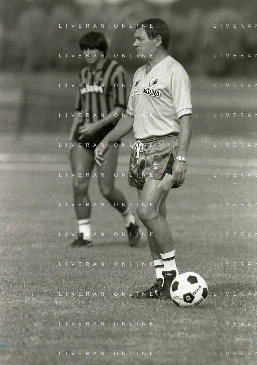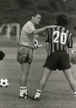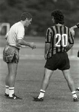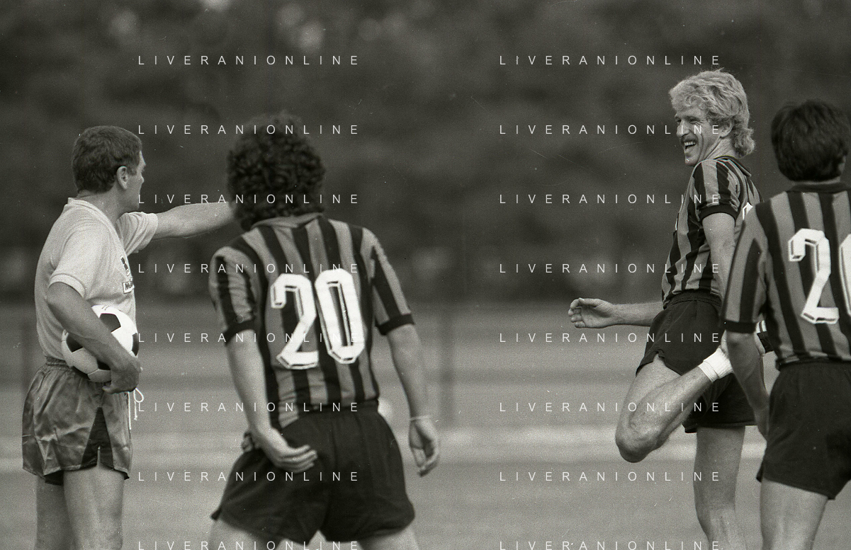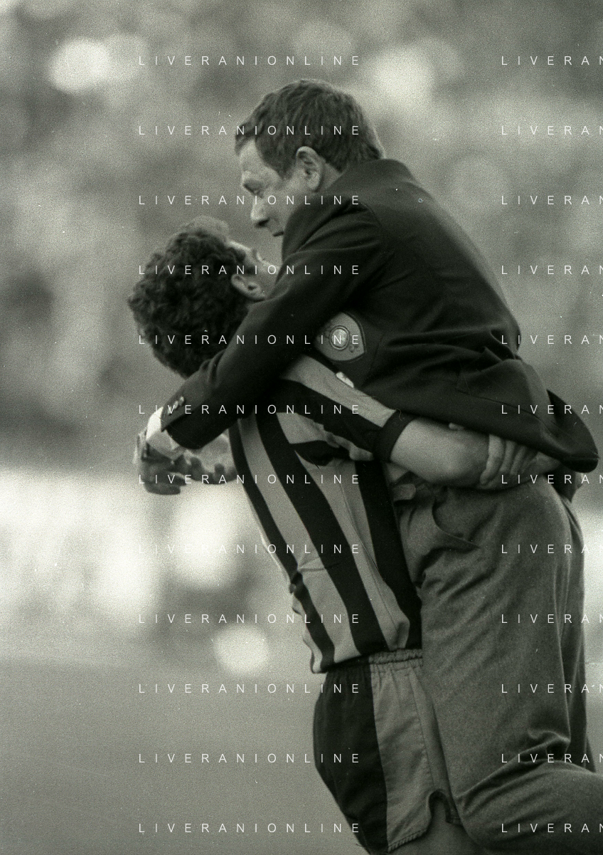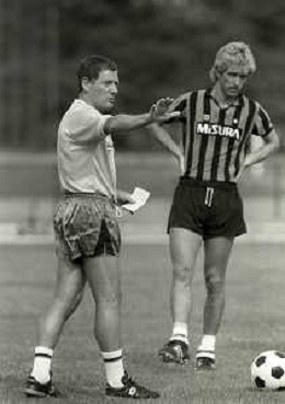 NEG-RETROSPETTIVA LUIGI RADICE ALLENATORE CALCIO NELLA FOTO LUIGI RADICE ALLENATORE INTER CALCIO NELL'ANNO 1983-1984 CON HANSI MULLER AG ALDO LIVERANI SAS