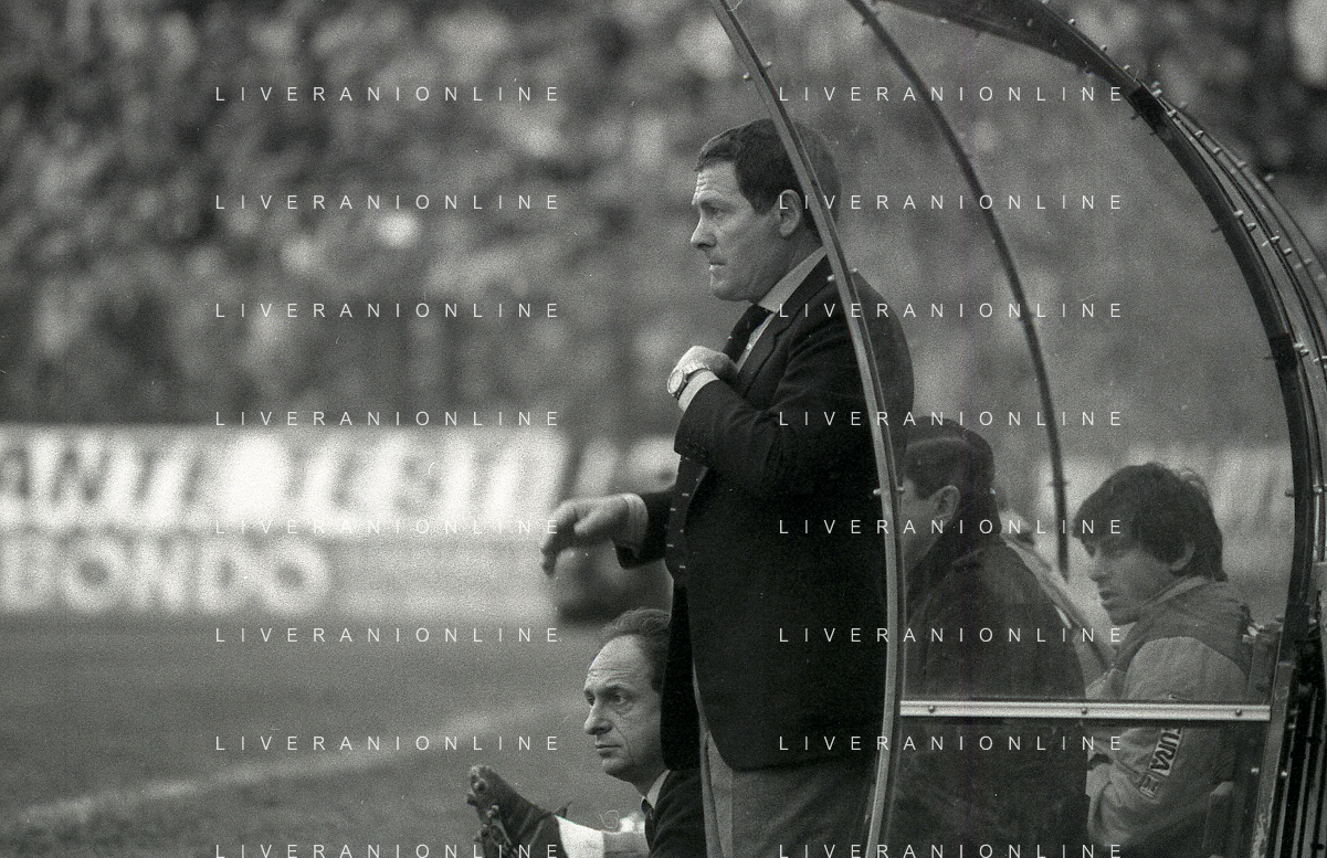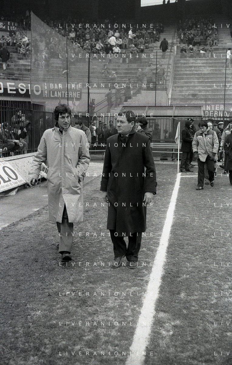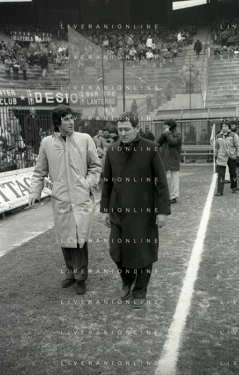 NEG-RETROSPETTIVA LUIGI RADICE ALLENATORE CALCIO NELLA FOTO LUIGI RADICE ALLENATORE INTER CALCIO NELL'ANNO 1983-1984 CON EUGENIO BERSELLINI ALLENATORE TORINO CALCIO AG ALDO LIVERANI SAS