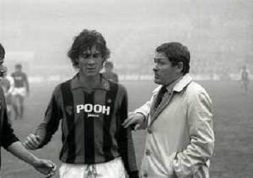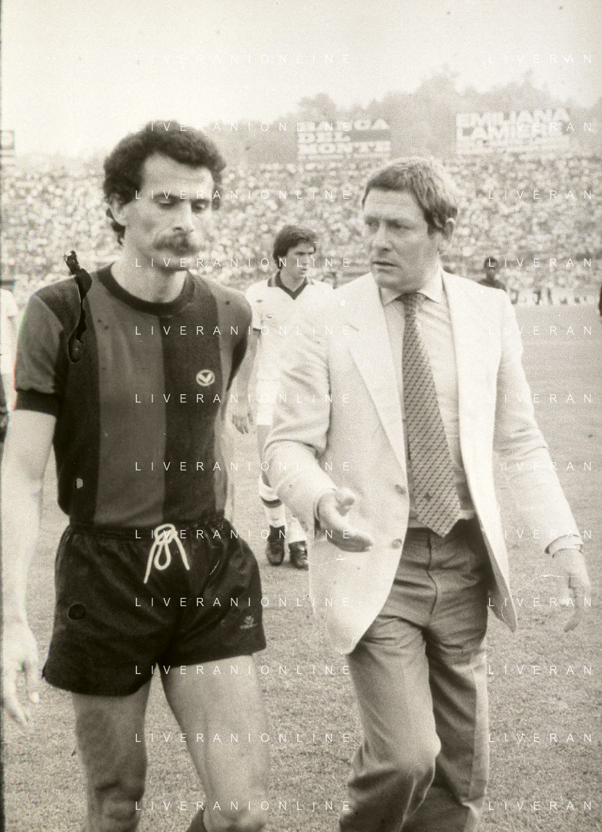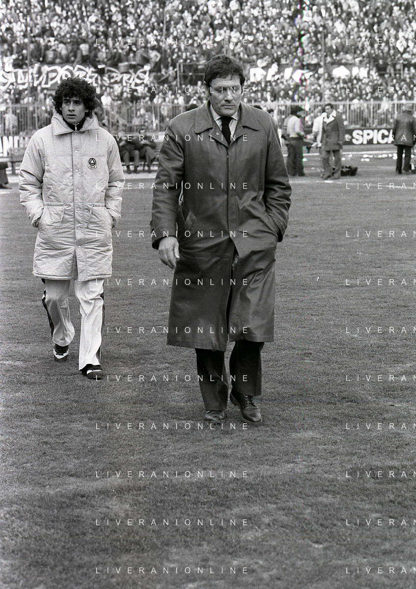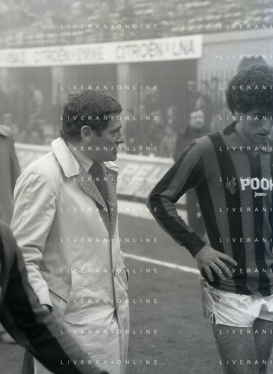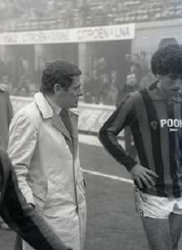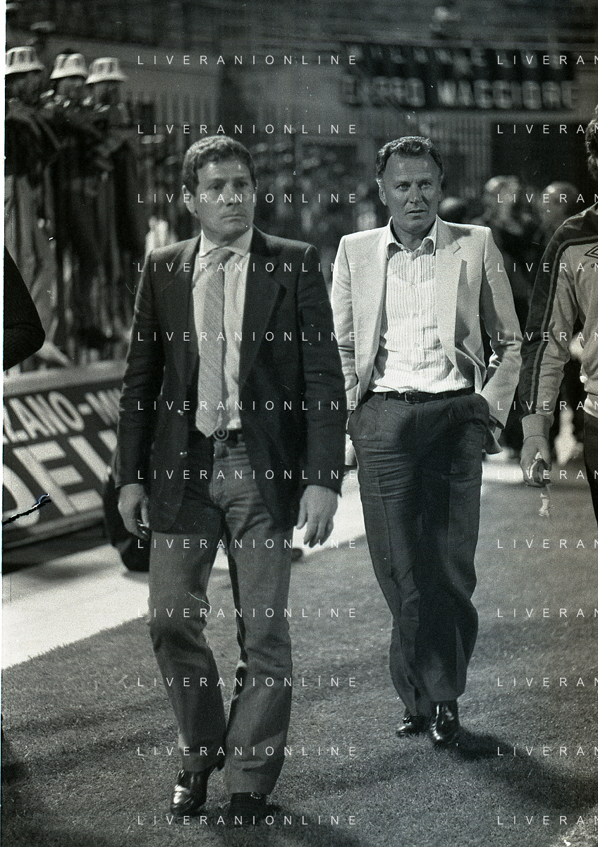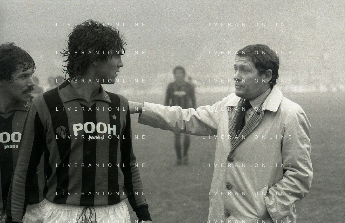 NEG-RETROSPETTIVA LUIGI RADICE ALLENATORE CALCIO NELLA FOTO LUIGI RADICE ALLENATORE MILAN CALCIO NELL'ANNO 1981-1982 CON ALBERICO EVANI AG ALDO LIVERANI SAS