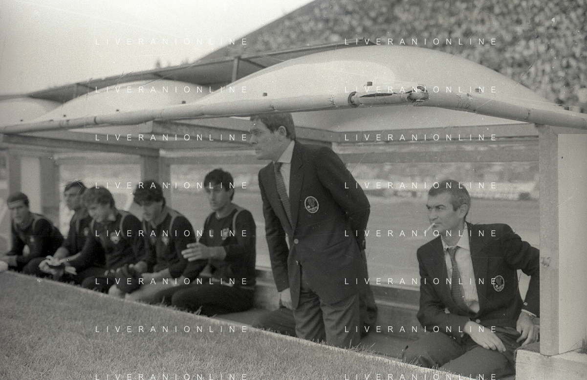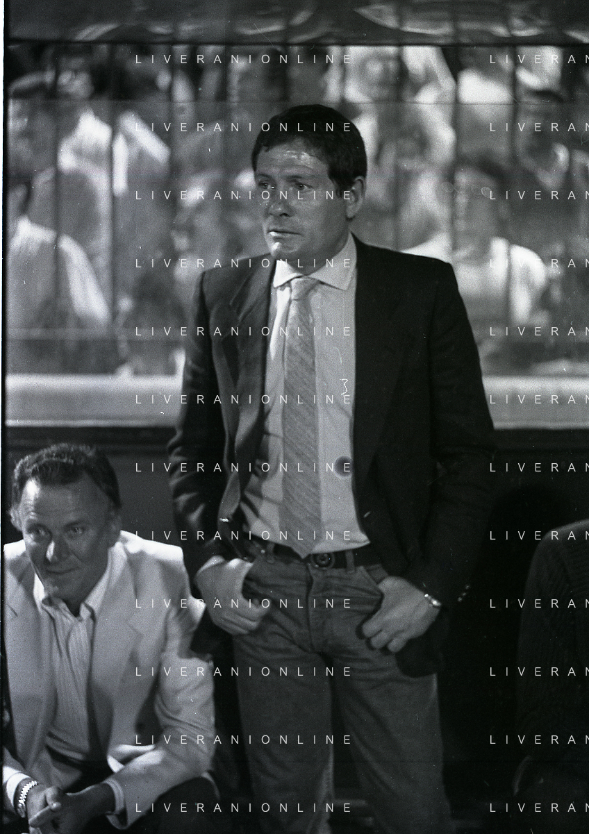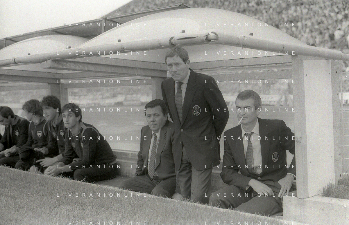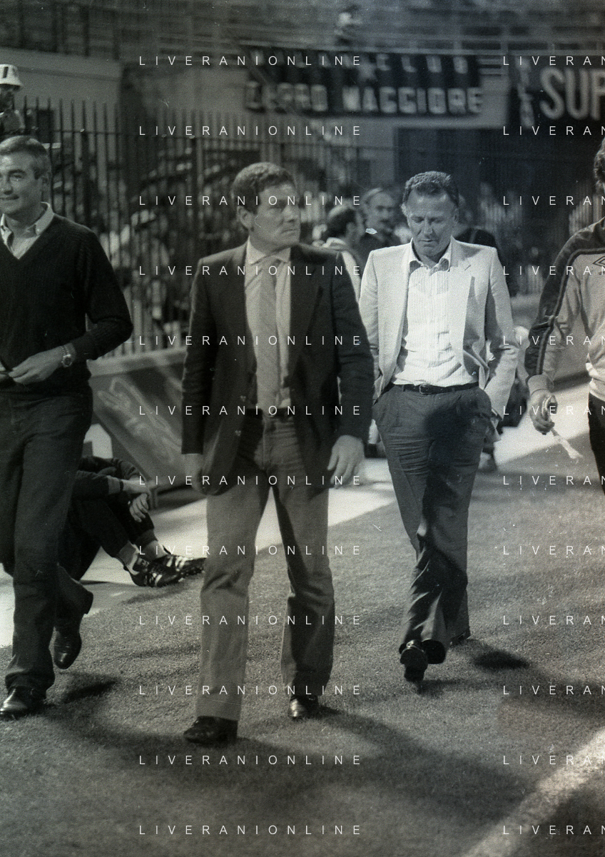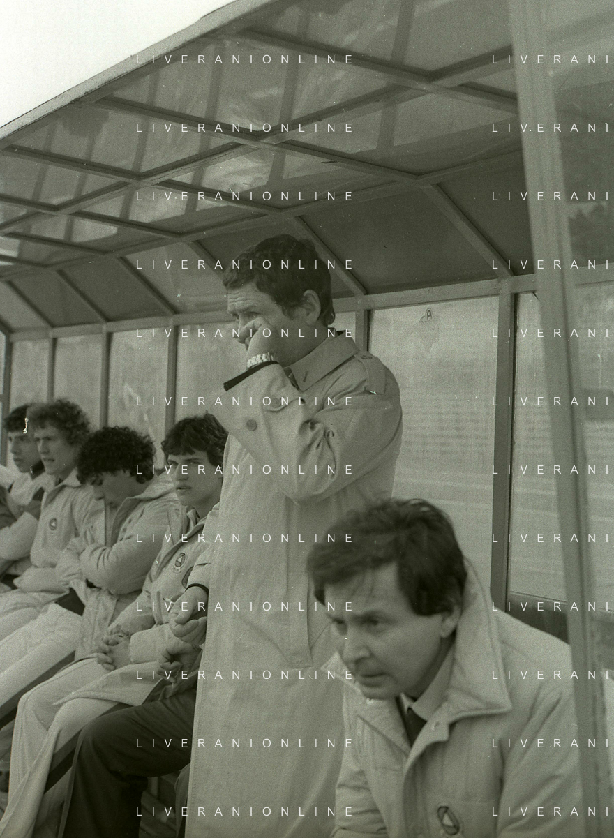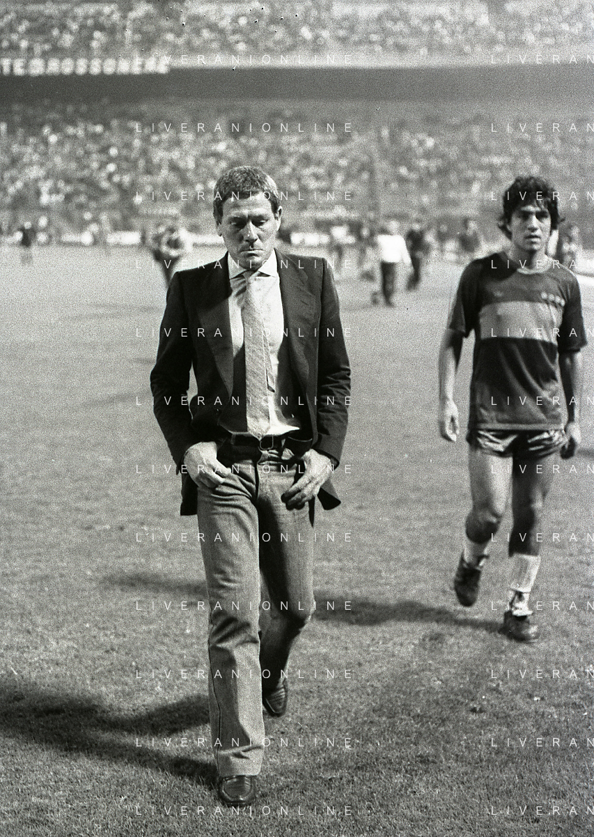 NEG-RETROSPETTIVA LUIGI RADICE ALLENATORE CALCIO NELLA FOTO LUIGI RADICE ALLENATORE MILAN CALCIO NELL'ANNO 1981-1982 CON ALBERICO EVANI AG ALDO LIVERANI SAS