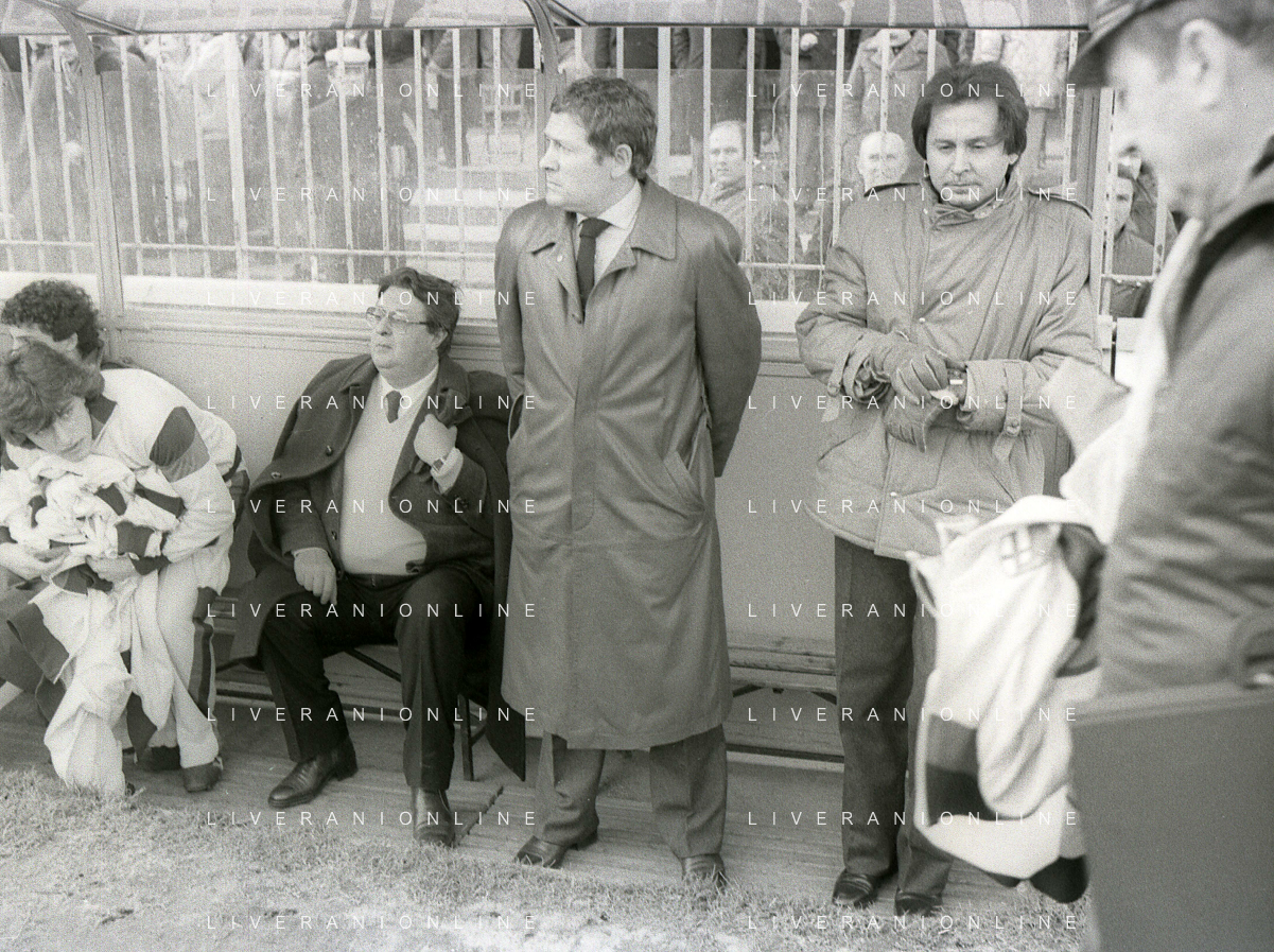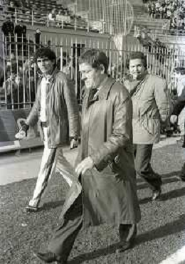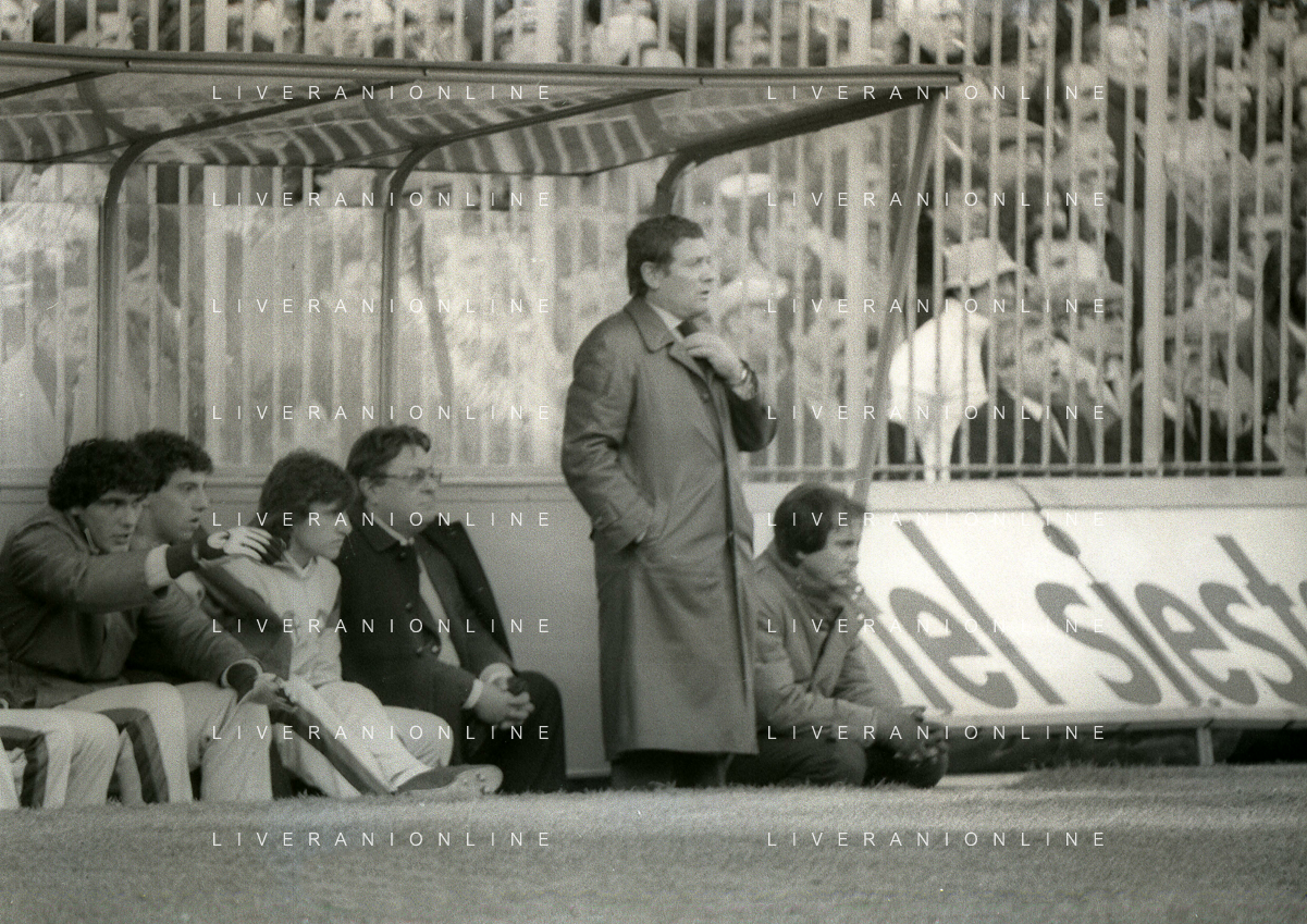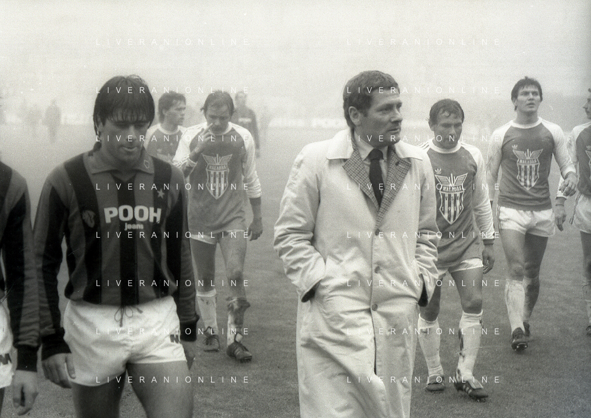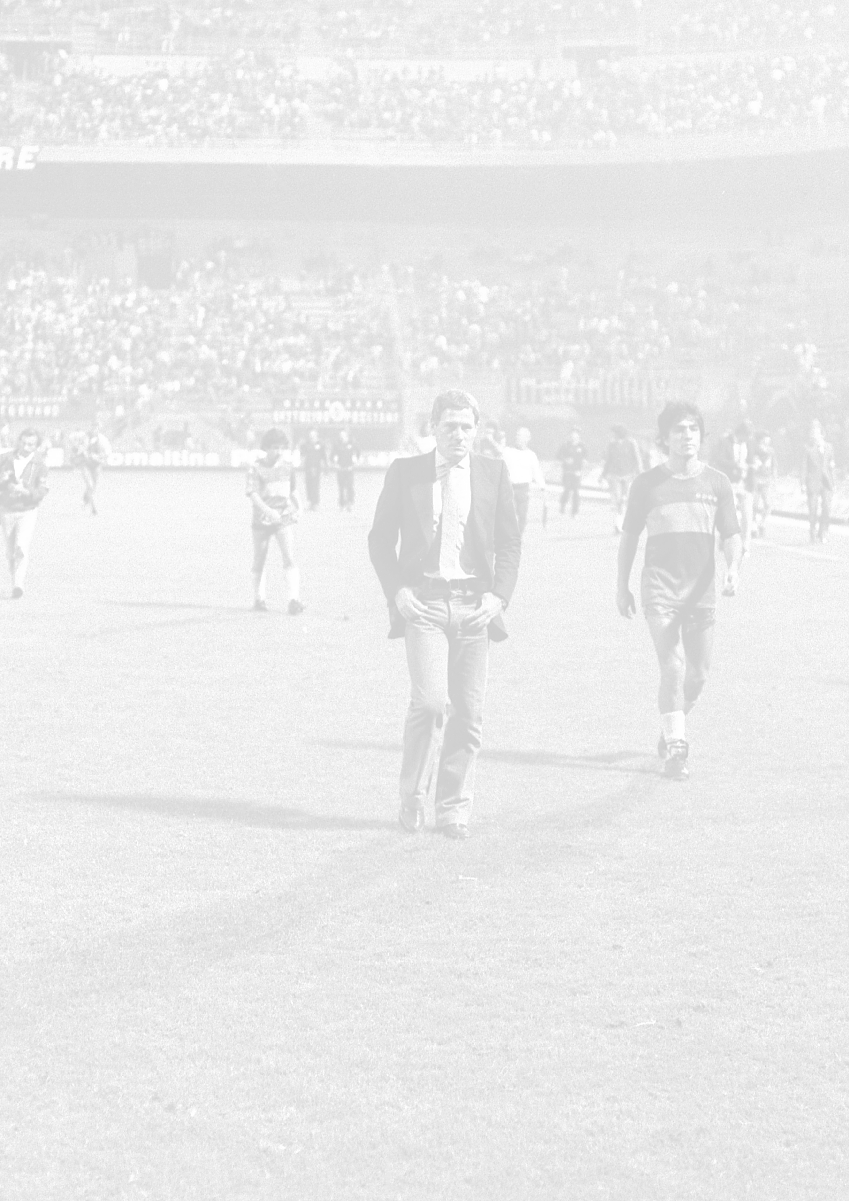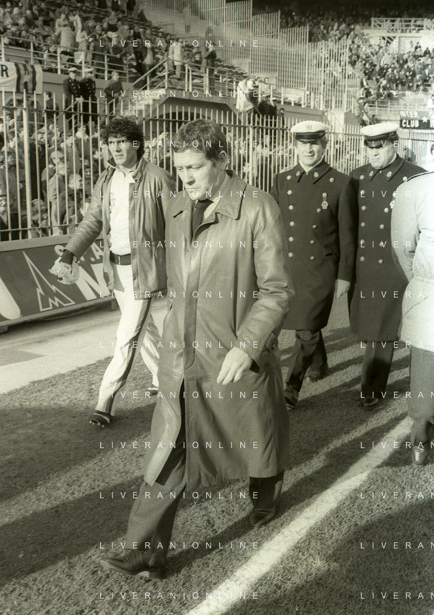 NEG-RETROSPETTIVA LUIGI RADICE ALLENATORE CALCIO NELLA FOTO LUIGI RADICE ALLENATORE MILAN CALCIO NELL'ANNO 1981-1982 CON ALBERICO EVANI AG ALDO LIVERANI SAS