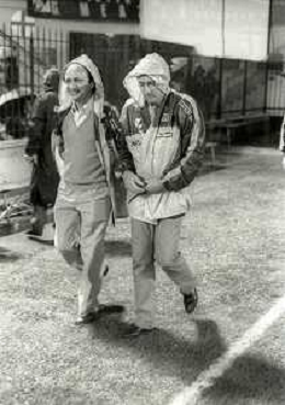 NEG-RETROSPETTIVA LUIGI RADICE ALLENATORE CALCIO NELLA FOTO LUIGI RADICE CON MABEL BOCCHI ALLENATORE MILAN CALCIO NELL'ANNO 1981-1982 A MILANELLO AG ALDO LIVERANI SAS