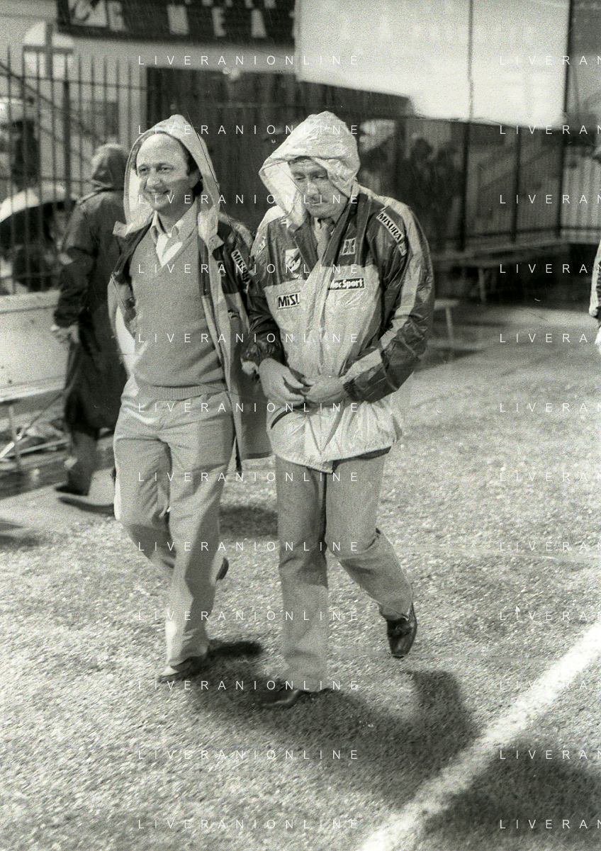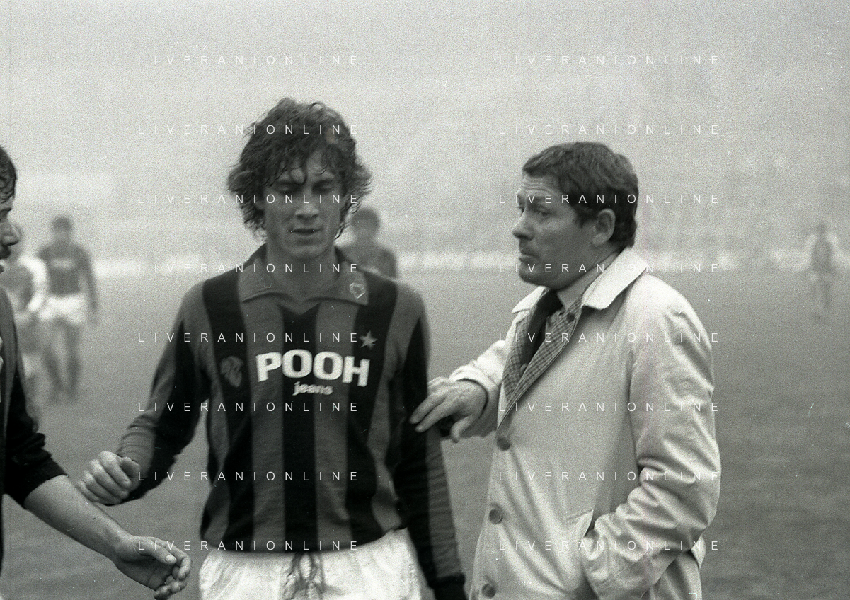 NEG-RETROSPETTIVA LUIGI RADICE ALLENATORE CALCIO NELLA FOTO LUIGI RADICE ALLENATORE MILAN CALCIO NELL'ANNO 1981-1982 CON FULVIO COLLOVATI AG ALDO LIVERANI SAS