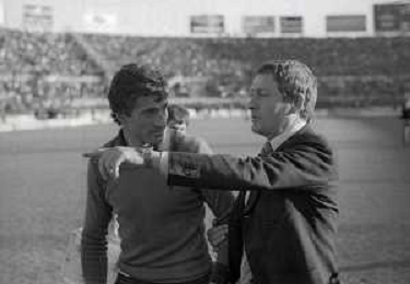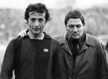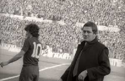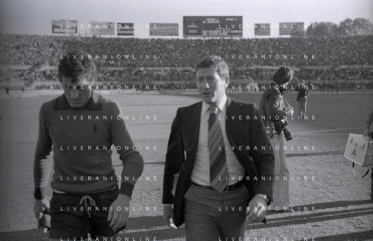 NEG-RETROSPETTIVA LUIGI RADICE ALLENATORE CALCIO NELLA FOTO LUIGI RADICE CON GIACINTO FACCHETTI NELL'ANNO 1977 AG ALDO LIVERANI SAS