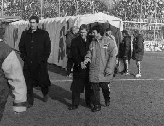 ARCHIVIO GIOVANNI LIVERANI 1984/85 NELLA FOTO LUIGI RADICE-LUIS VINICIO AG ALDO LIVERANI