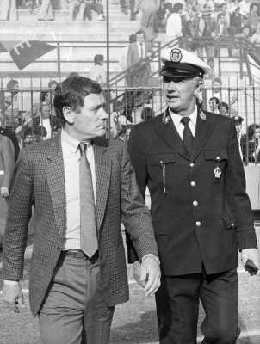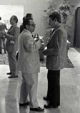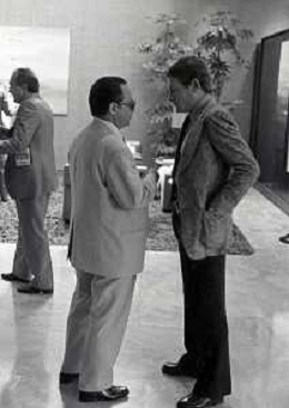 NEG-RETROSPETTIVA LUIGI RADIVìCE ALLENATORE CALCIO NELLA FOTO LUIGI RADICE A MILANO AL CALCIO MERCATO CON EDMONDO FABBRI NELL'ANNO 1975 AG ALDO LIVERANI SAS