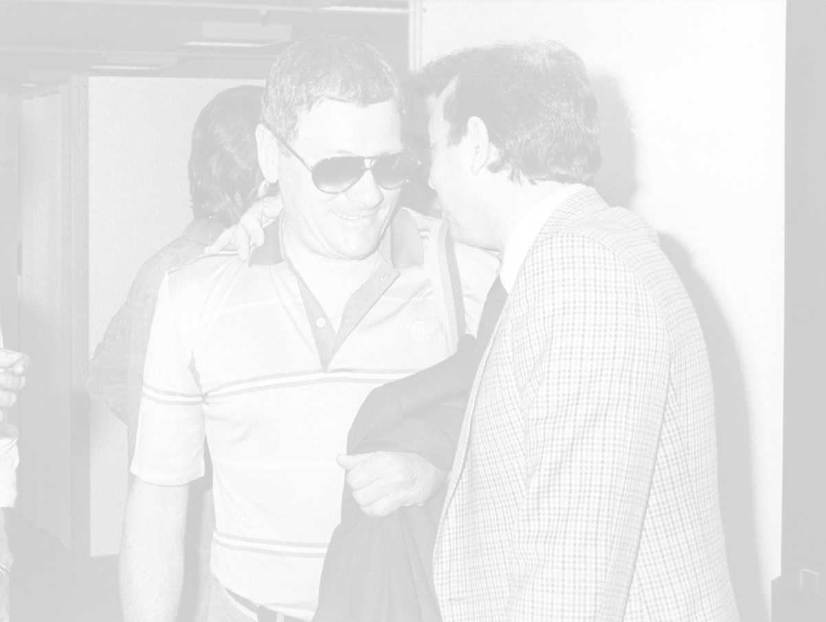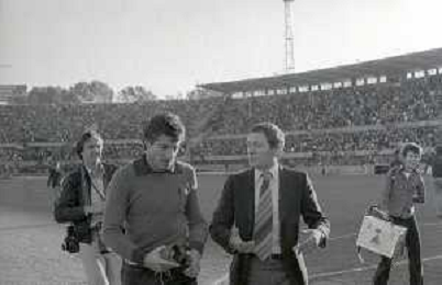 RETROSPETTIVA LUIGI RADICE ALLENATORE CALCIO NELLA FOTO LUIGI RADICE AL CALCIO MERCATO CON BRUNO PACE NELL'ANNO 1979-1980 AG ALDO LIVERANI SAS