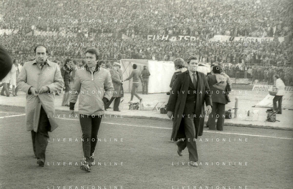 NEG-RETROSPETTIVA LUIGI RADICE ALLENATORE CALCIO NELLA FOTO LUIGI RADICE CON BRUNO PIZZUL E SERGIO BRIGHENTI A MONZA NELL'ANNO 1979 AG ALDO LIVERANI SAS