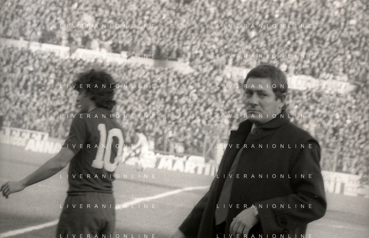 NEG-RETROSPETTIVA LUIGI RADICE ALLENATORE CALCIO NELLA FOTO LUIGI RADICE CON GIACINTO FACCHETTI NELL'ANNO 1978-1979 AG ALDO LIVERANI SAS