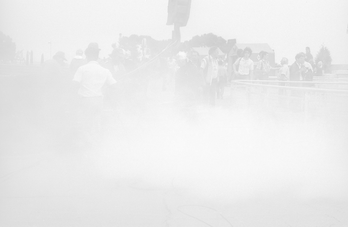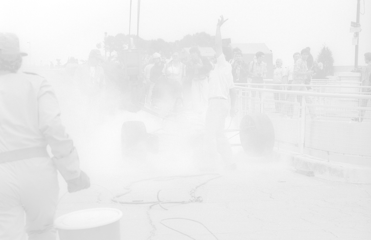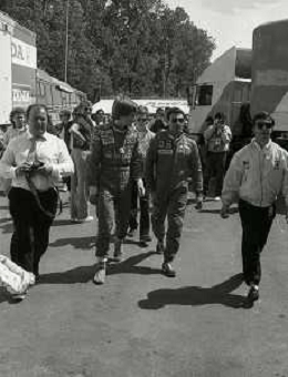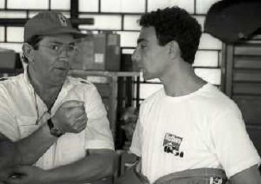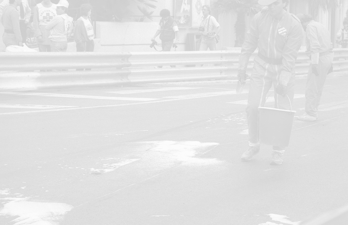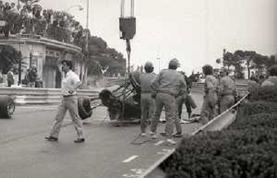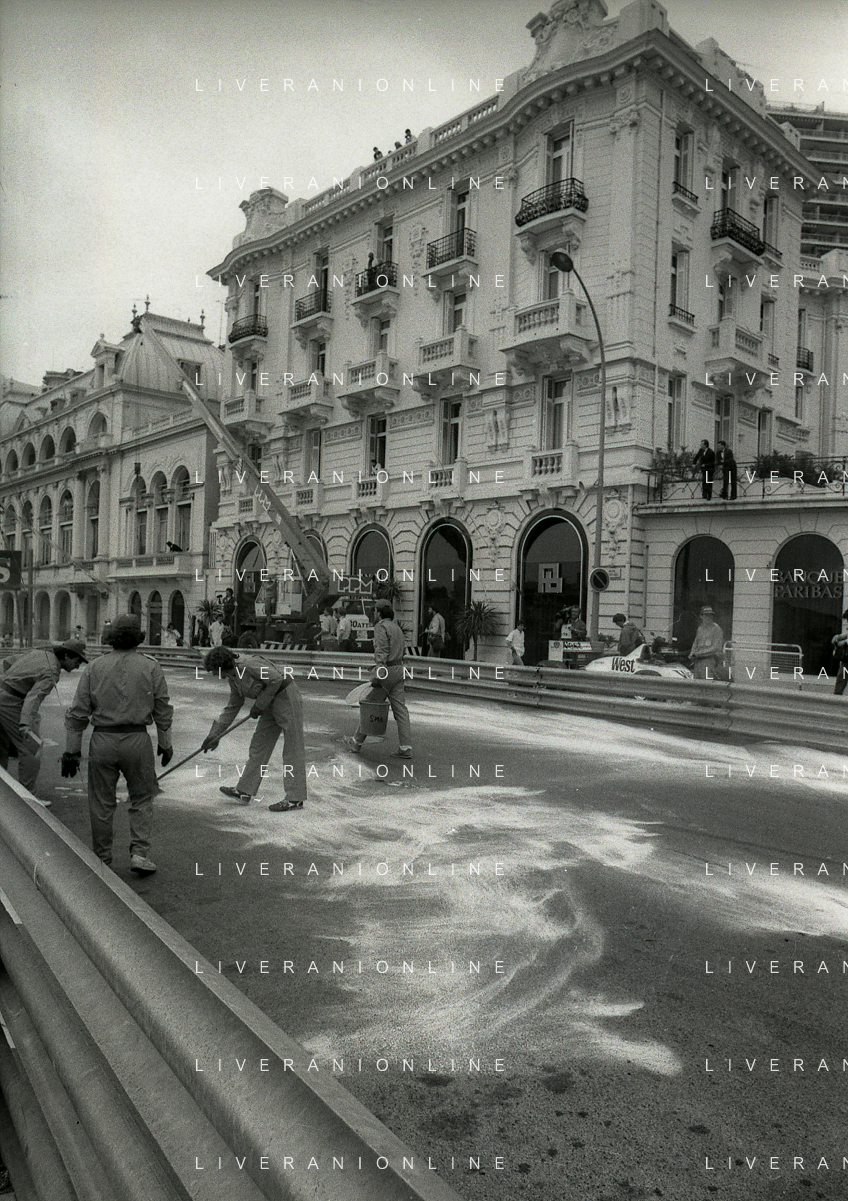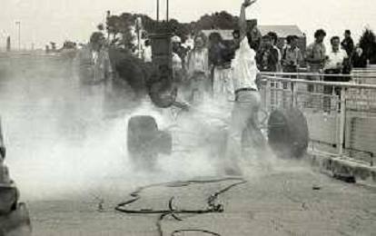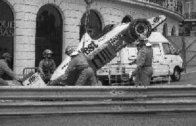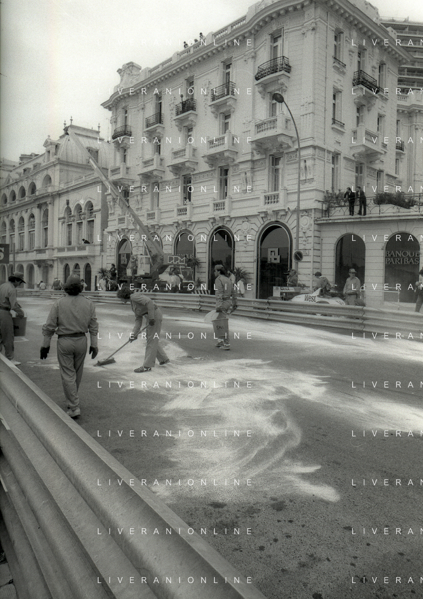 NEG-RETROSPETTIVA MICHELE ALBORETO PILOTA NELLA FOTO MICHELE ALBORETO CON CHRIISTIAN DANNER INCIDENTE ALLE PROVE DEL GP MONTECARLO ANNO 1987 AG ALDO LIVERANI SAS