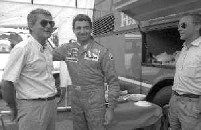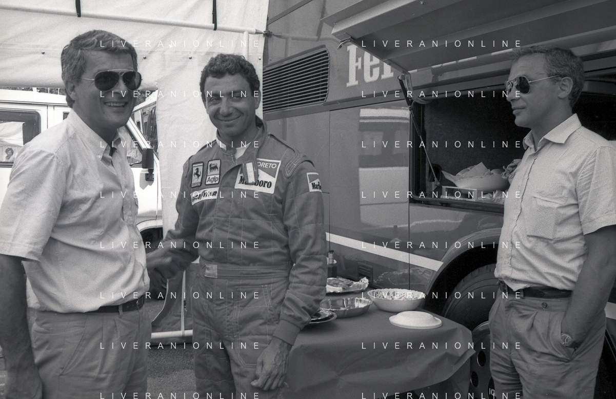 NEG-RETROSPETTIVA MICHELE ALBORETO PILOTA NELLA FOTO MICHELE ALBORETO CON SILVANO RAMACCIONI E DANIELE MASSARO IN VISITA A MILANELLO ANNO 1988 AG ALDO LIVERANI SAS