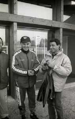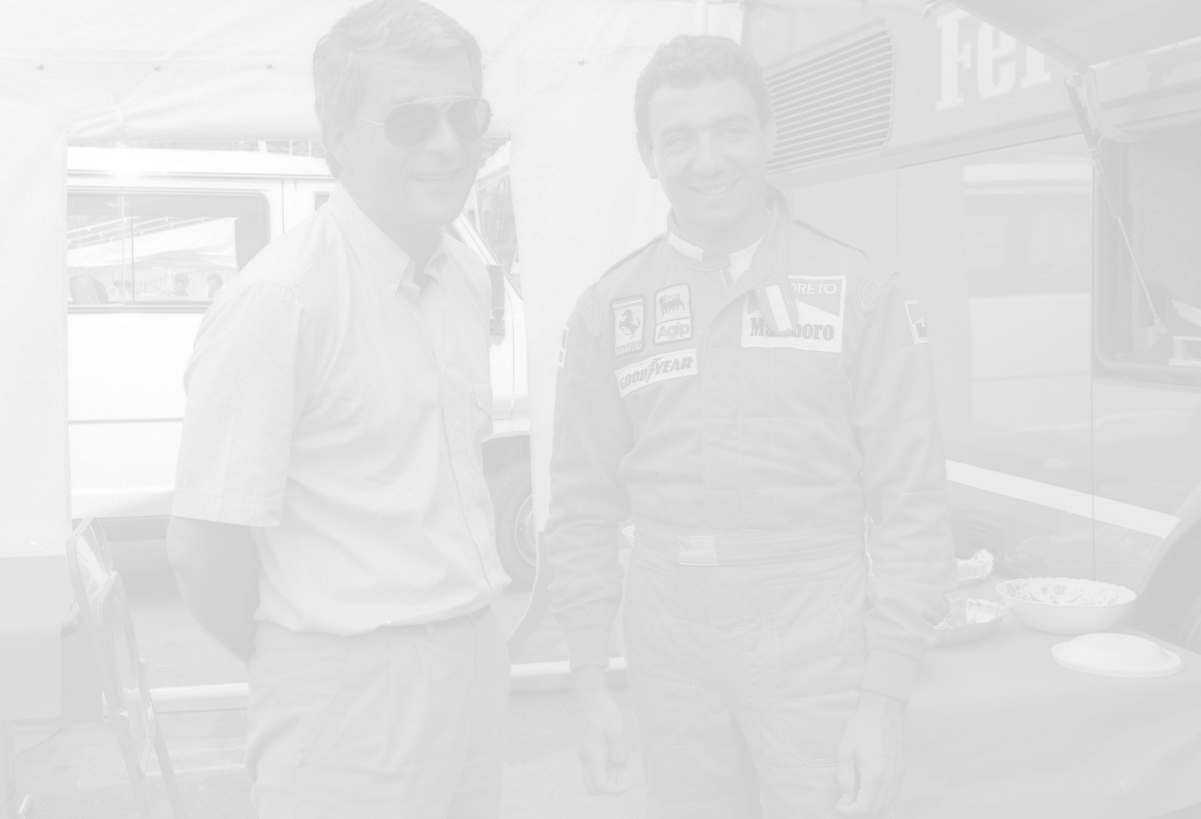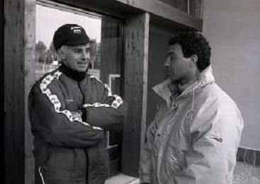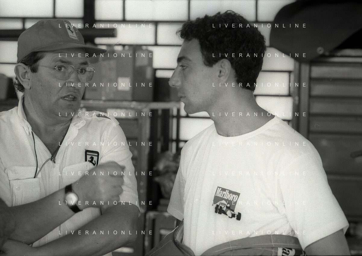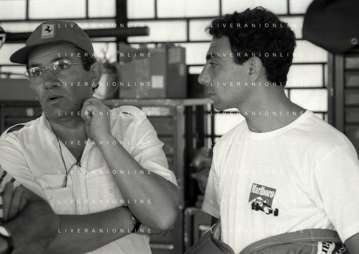 NEG-RETROSPETTIVA MICHELE ALBORETO PILOTA NELLA FOTO MICHELE ALBORETO CON SILVANO RAMACCIONI IN VISITA A MILANELLO ANNO 1988 AG ALDO LIVERANI SAS