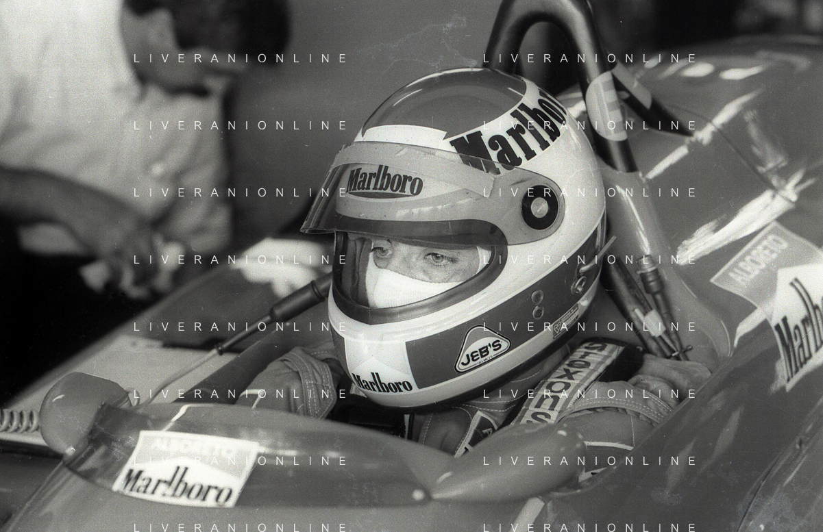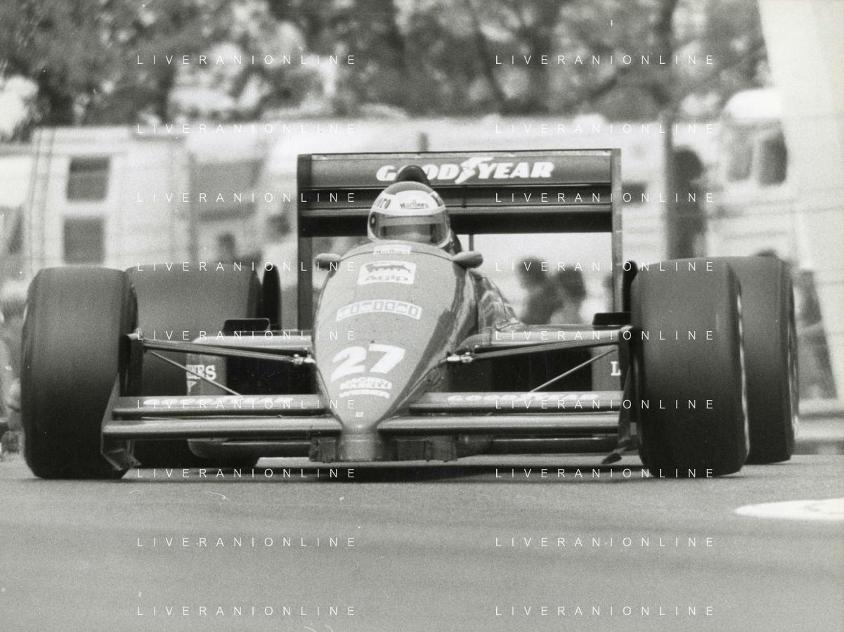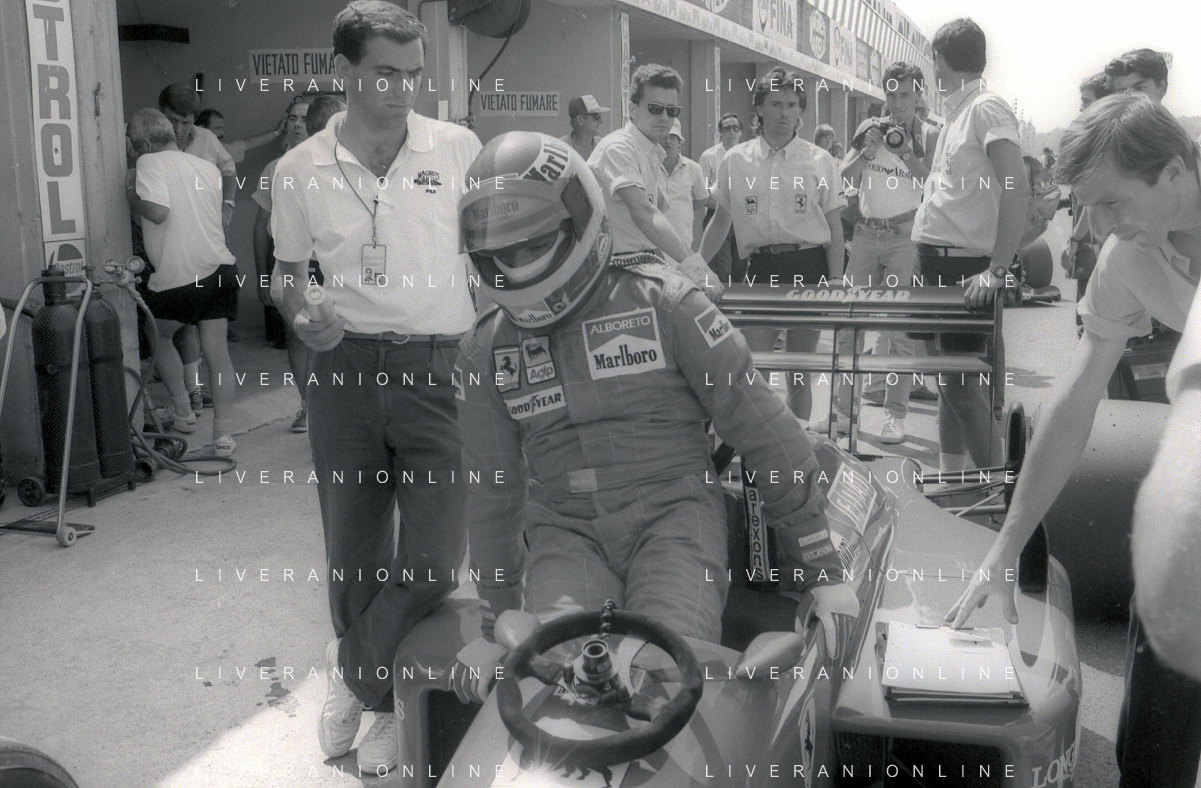 NEG-RETROSPETTIVA MICHELE ALBORETO PILOTA NELLA FOTO MICHELE ALBORETO ANNO 1987 AL GP DI IMOLA AG ALDO LIVERANI SAS