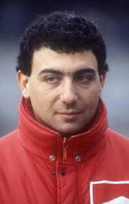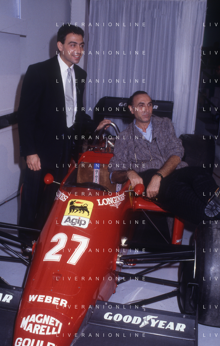 RETROSPETTIVA MICHELE ALBORETO PILOTA F1 NELLA FOTO MICHELE ALBORETO NELL'ANNO 1985 CON PIPPO BAUDO AG ALDO LIVERANI SAS