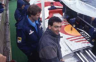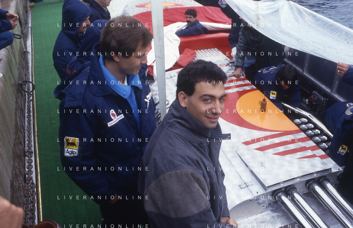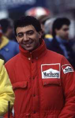 RETROSPETTIVA MICHELE ALBORETO PILOTA F1 NELLA FOTO MICHELE ALBORETO NELL'ANNO 1985 CON STEFANO CASIRAGHI AG ALDO LIVERANI SAS