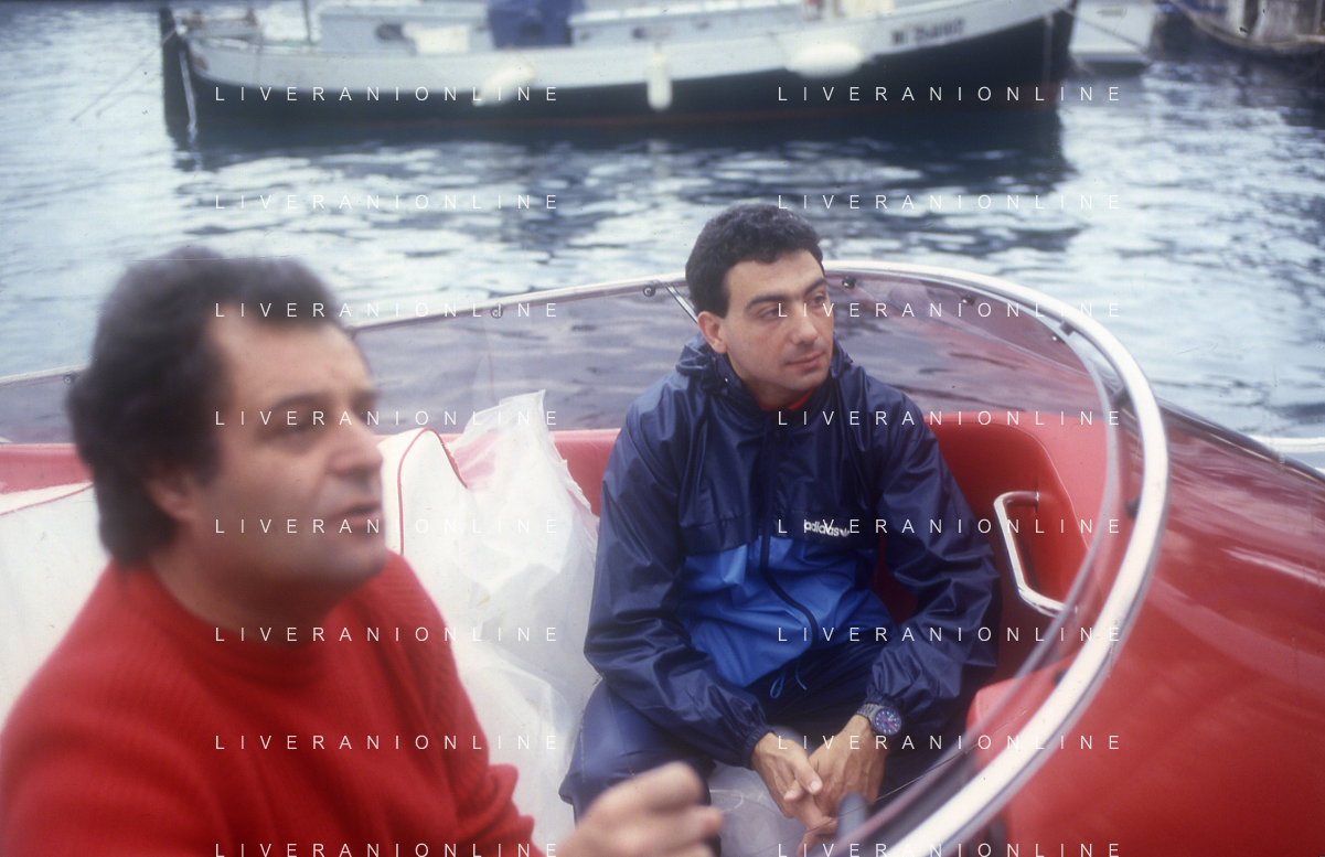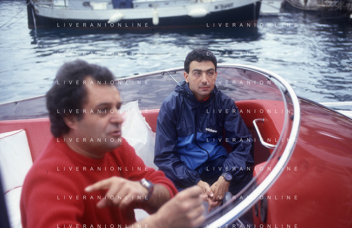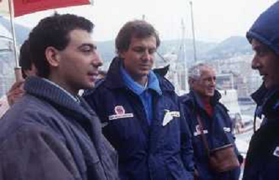 RETROSPETTIVA MICHELE ALBORETO PILOTA F1 NELLA FOTO MICHELE ALBORETO NELL'ANNO 1985 A MONTECARLO CON STEFANO CASIRAGHI AG ALDO LIVERANI SAS