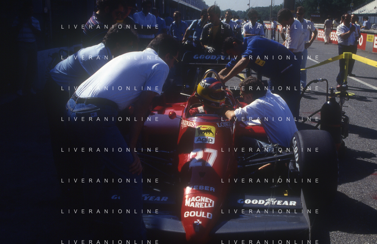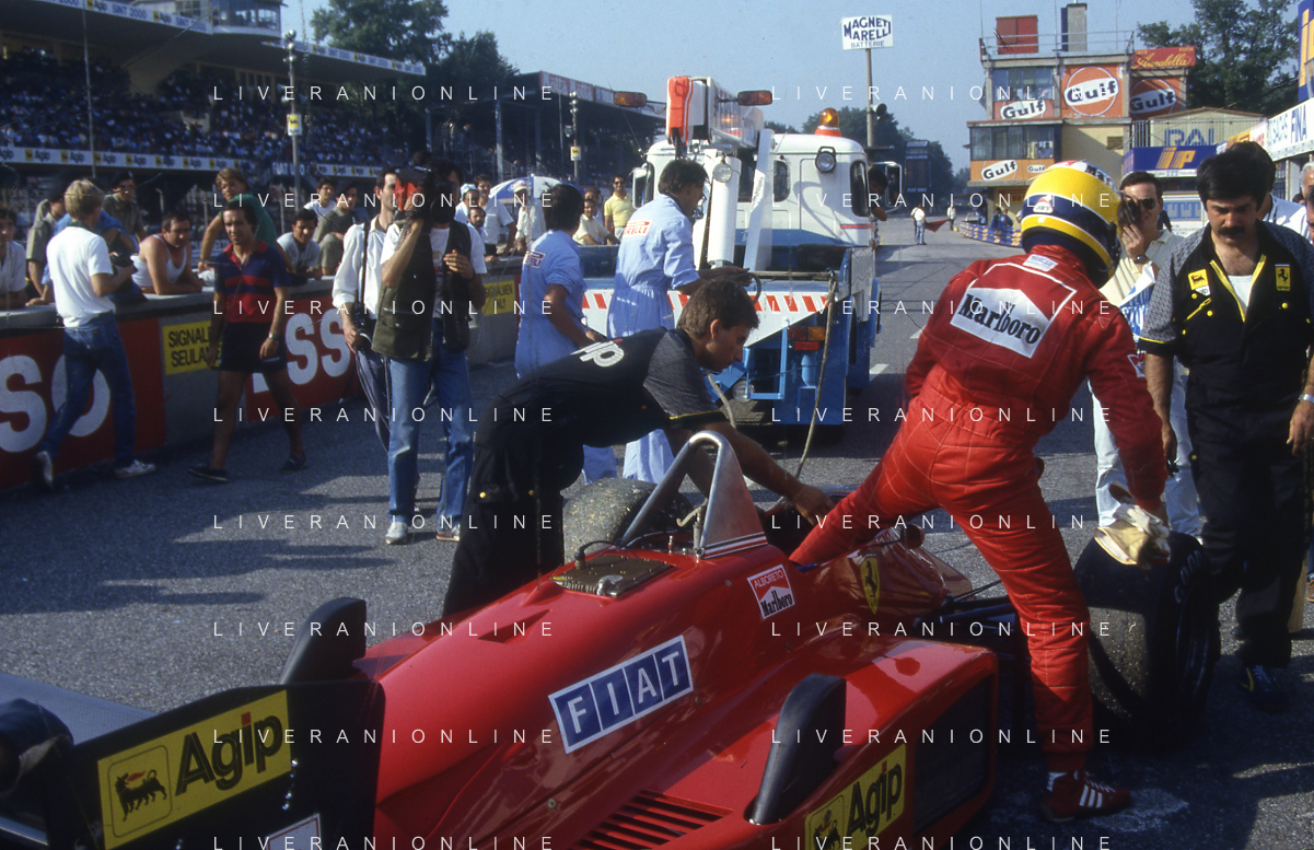 RETROSPETTIVA MICHELE ALBORETO PILOTA F1 NELLA FOTO MICHELE ALBORETO NELL'ANNO 1985 A MONZA AG ALDO LIVERANI SAS