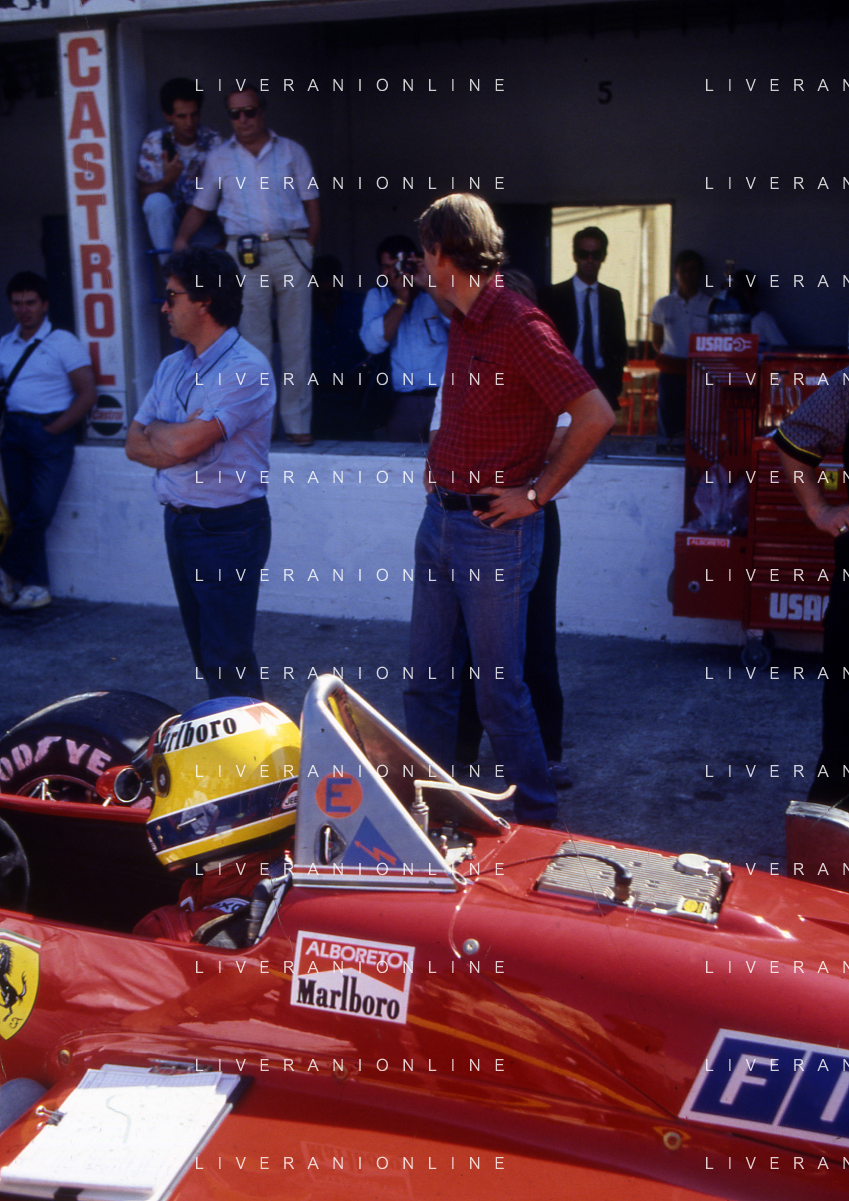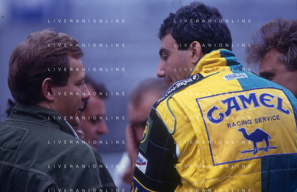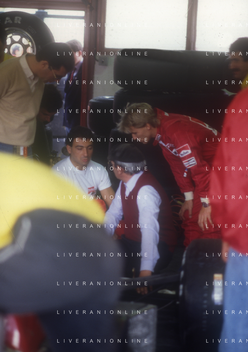 RETROSPETTIVA MICHELE ALBORETO PILOTA F1 NELLA FOTO MICHELE ALBORETO CON Stefan Nils Edwin Johansson NELL'ANNO 1985 A IMOLA AG ALDO LIVERANI SAS
