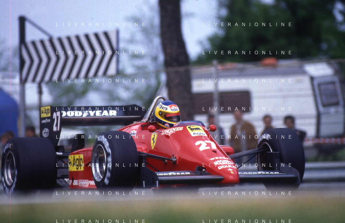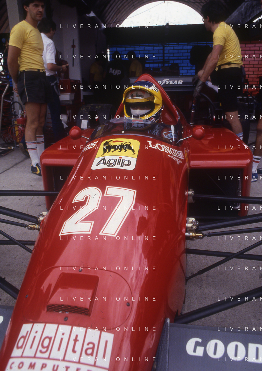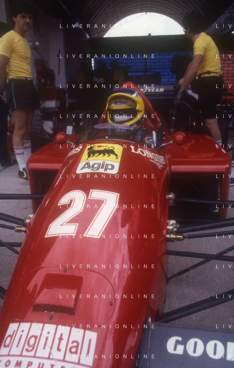 RETROSPETTIVA MICHELE ALBORETO PILOTA F1 NELLA FOTO MICHELE ALBORETO NELL'ANNO 1985 A IMOLA AG ALDO LIVERANI SAS