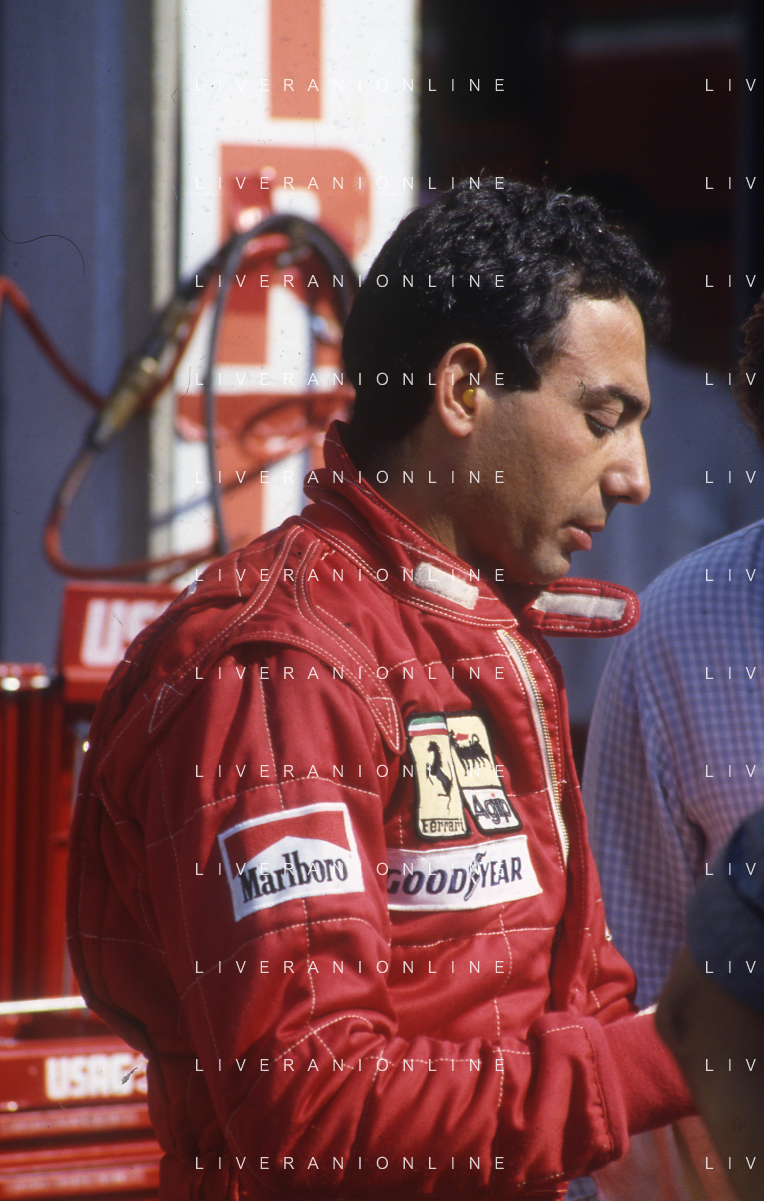 RETROSPETTIVA MICHELE ALBORETO PILOTA F1 NELLA FOTO MICHELE ALBORETO NELL'ANNO 1985 AG ALDO LIVERANI SAS