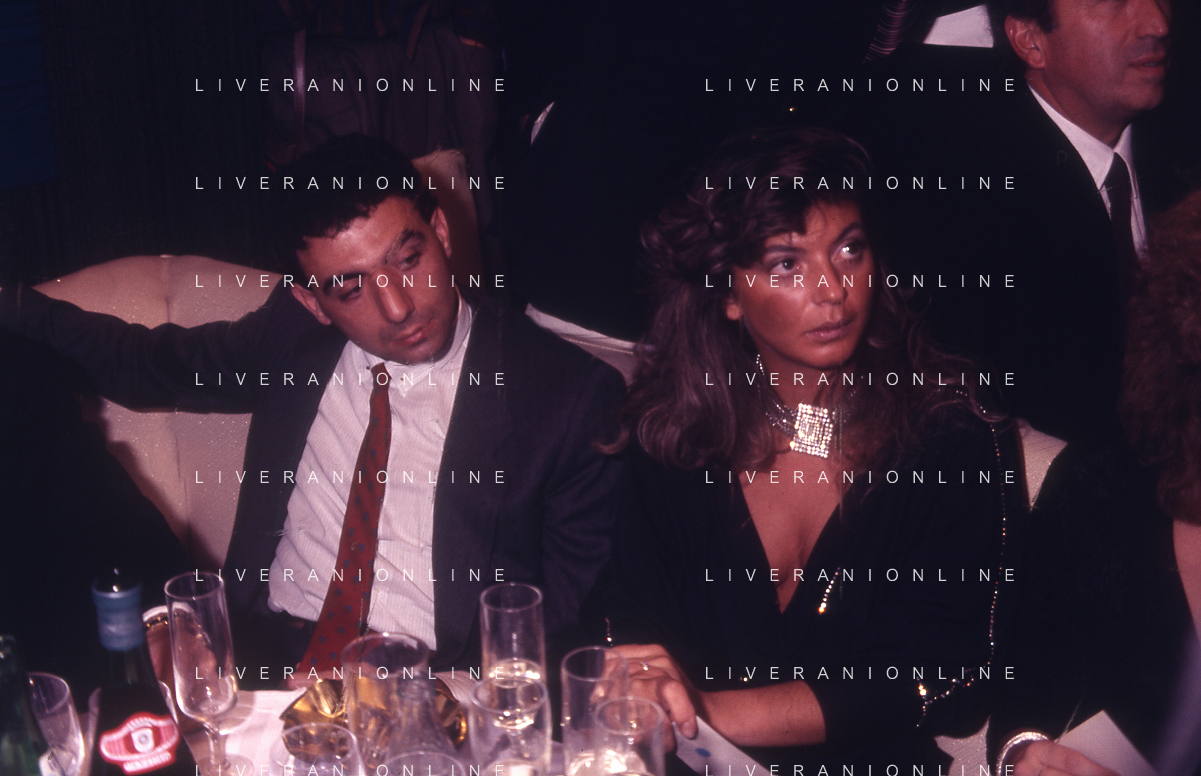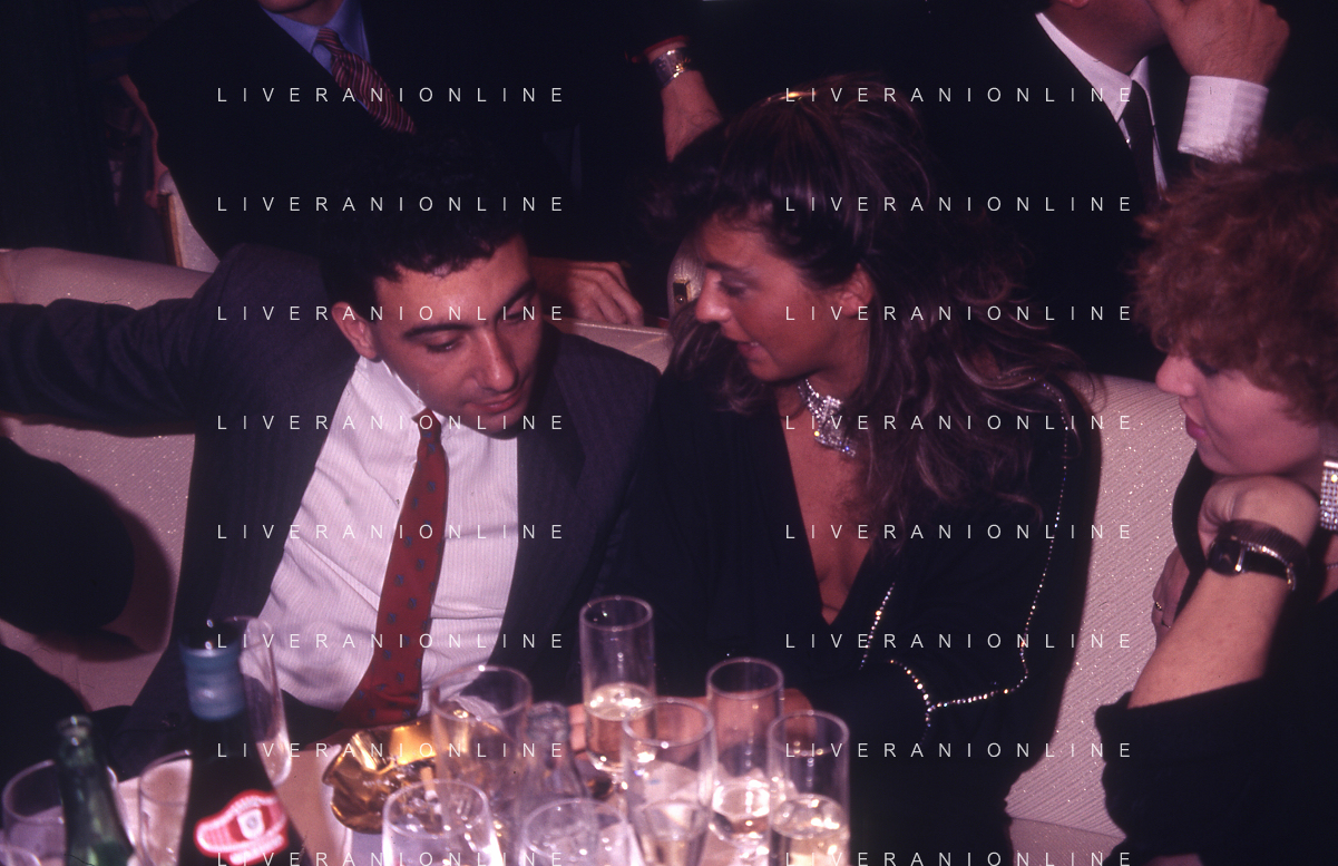 RETROSPETTIVA MICHELE ALBORETO PILOTA F1 NELLA FOTO MICHELE ALBORETO NELL'ANNO 1985 A MILANO CON LA MOGLIE AG ALDO LIVERANI SAS