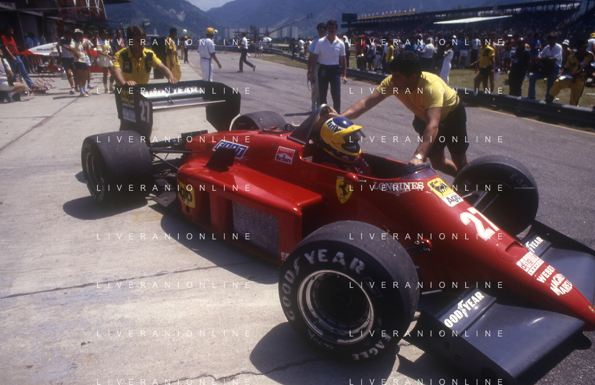 RETROSPETTIVA MICHELE ALBORETO PILOTA F1 NELLA FOTO MICHELE ALBORETO NELL'ANNO 1986 AL GP BRASILE AG ALDO LIVERANI SAS