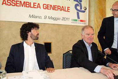 MILANO 09/05/2011 WESTIN PALACE HOTEL ASSEMBLEA GENERALE ASSOCIAZIONE ITALANA CALCIATORI NELLA FOTO DAMIANO TOMMASI SERGIO CAMPANA PH.FIOCHI/ALDO LIVERANI SAS