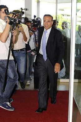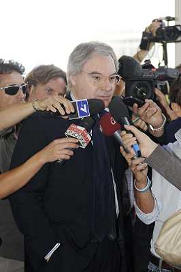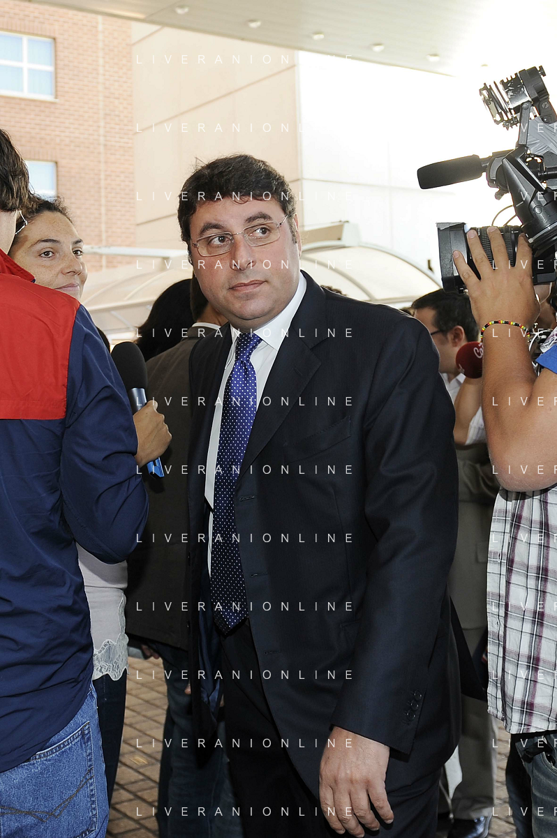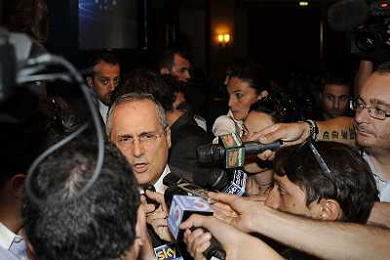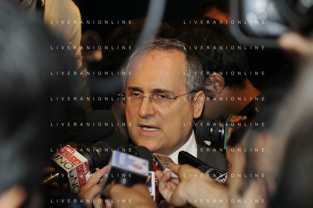 Roma - 20/06/2011 - Hotel Hilton Airport - Assemblea Straordinaria Lega Calcio - nella foto: Claudio Lotito assediato dai cronisti Ω Fabrizio Corradetti - Ag. Aldo Liverani sas