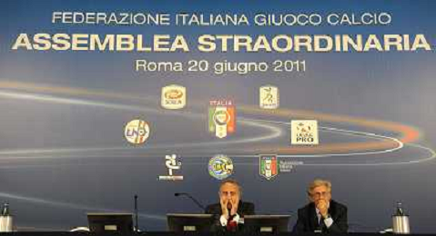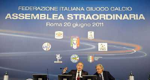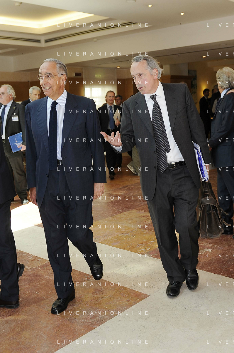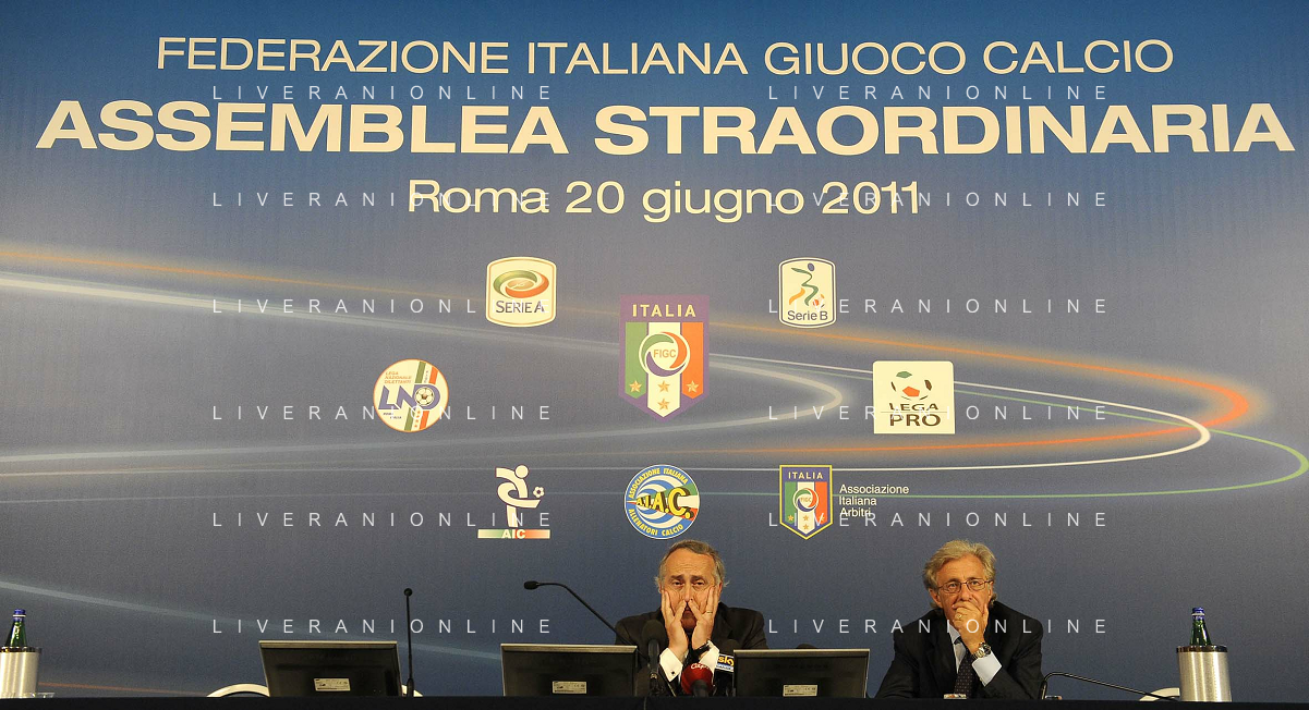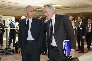 Roma - 20/06/2011 - Hotel Hilton Airport - Assemblea Straordinaria Lega Calcio - nella foto: Giancarlo Abete e Antonello Valentini Ω Fabrizio Corradetti - Ag. Aldo Liverani sas