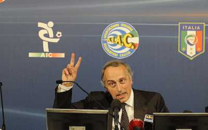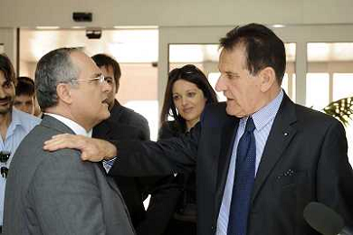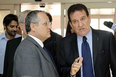 Roma - 20/06/2011 - Hotel Hilton Airport - Assemblea Straordinaria Lega Calcio - nella foto: Claudio Lotito con Mario Magalli Presidente della Lega Pro Ω Fabrizio Corradetti - Ag. Aldo Liverani sas