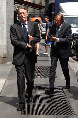 MILANO - 05/07/2011 MASSIMO MORATTI ARRIVA NELLA SEDE DELLA SARAS IL GIORNO DOPO LA RELAZIONE DI DEL PROCURATORE DELLA FIGC STEFANO PALAZZI RIGUARDANTE LO SCUDETTO 2005/2006 NELLA FOTO MASSIMO MORATTI RINALDO GHELFI PH.FIOCHI/ALDO LIVERANI SAS