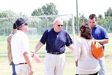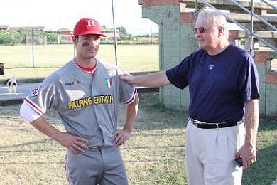PARMA 16/07/2011 - THOMAS DI BENEDETTO SENIOR ASSISTE ALLA PARTITA DI BASEBALL DEL FIGLIO - NELLA FOTO: IL PATRON DELLA ROMA ASSIEME ALLA PRESIDENTE DEL BASEBALL REGGIO GRAZIELLA CASALI - FOTO FRANCESCA SOLI / AGENZIA ALDO LIVERANI