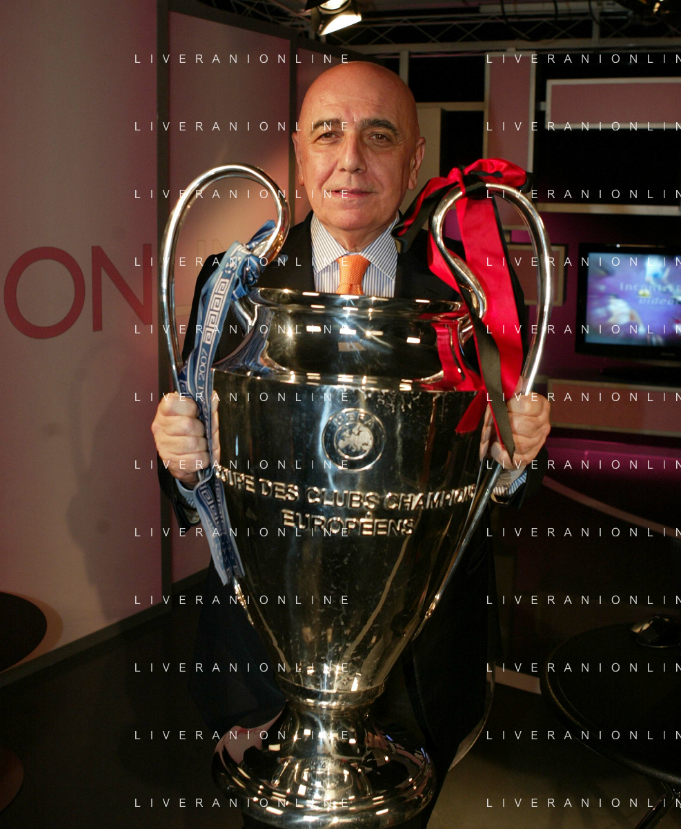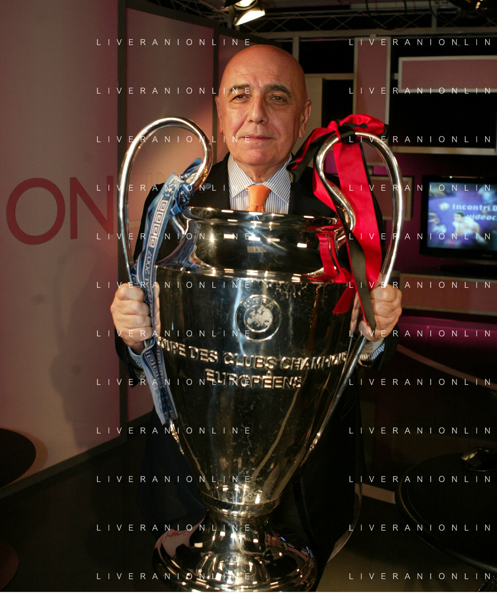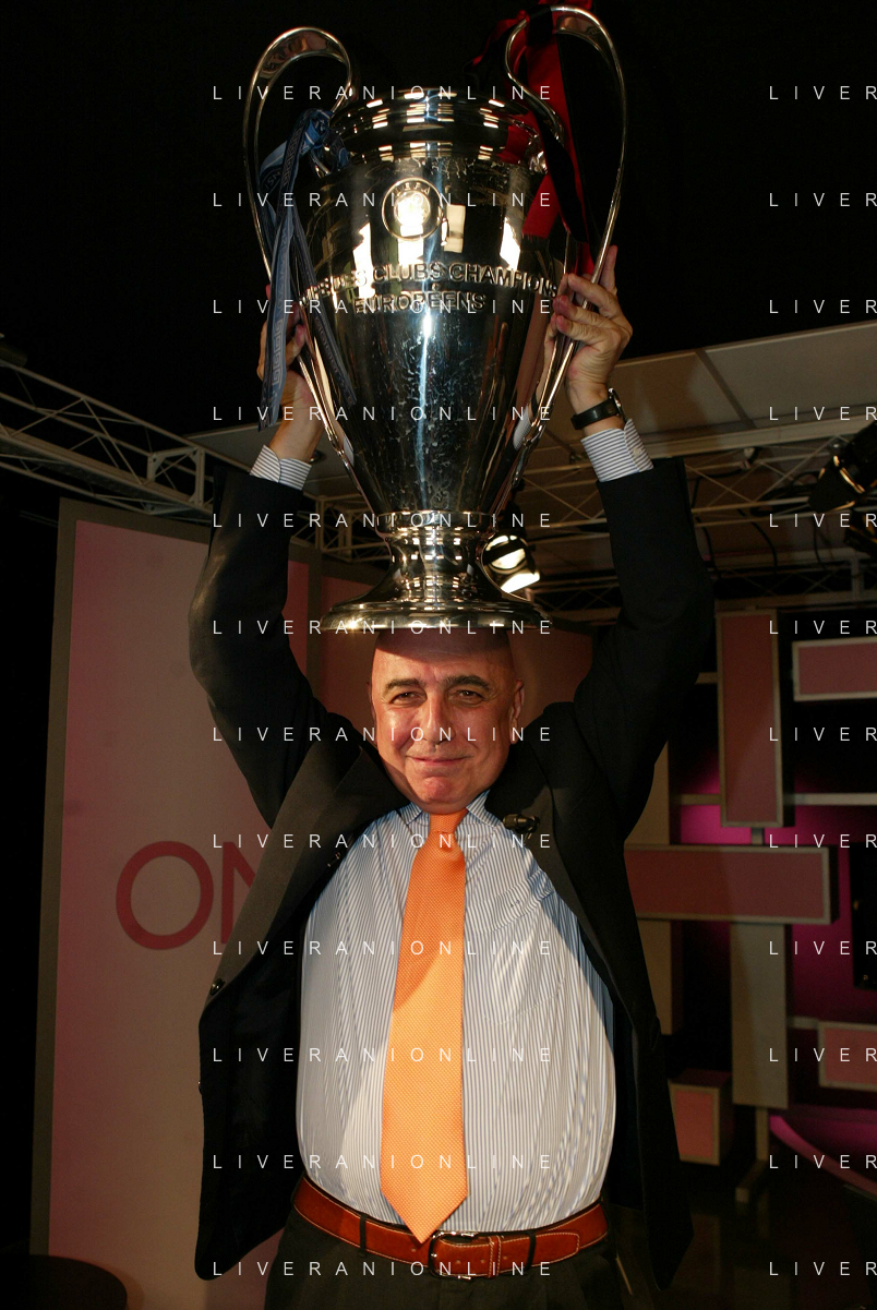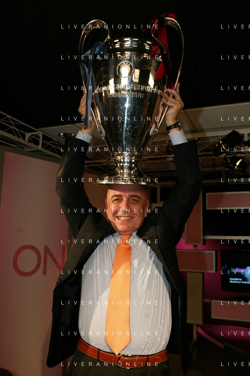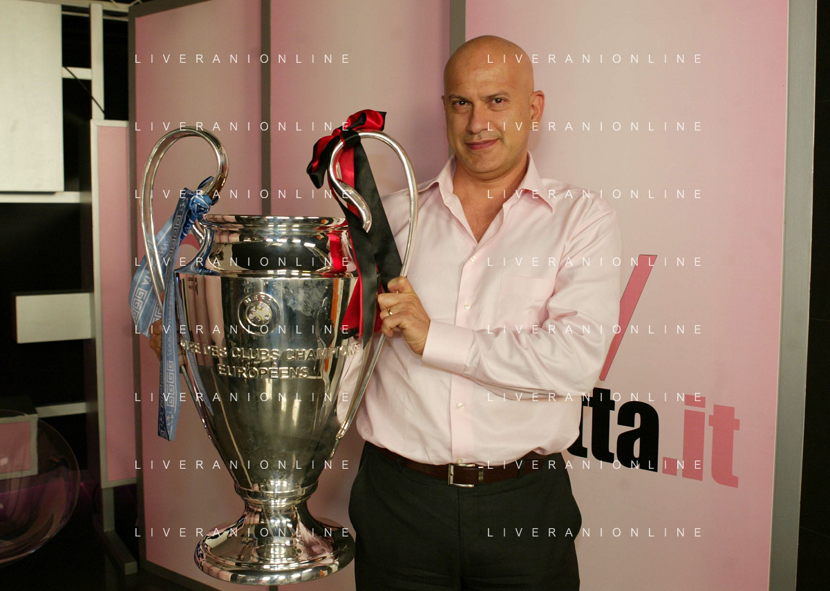 MILANO 2007- ADRIANO GALLIANO AMMNISTRATORE DEL AC MILAN PORTA LA COPPA DEI CAMPIONI VINTA AD ATENE ALLA GAZZETTA DELLO SPORT DI VIA SOLFERINO 28 MILANO NELLA FOTO ADRIANO GALLIANI CON LA COPPA DEI CAMPIONI AG ALDO LIVERANI